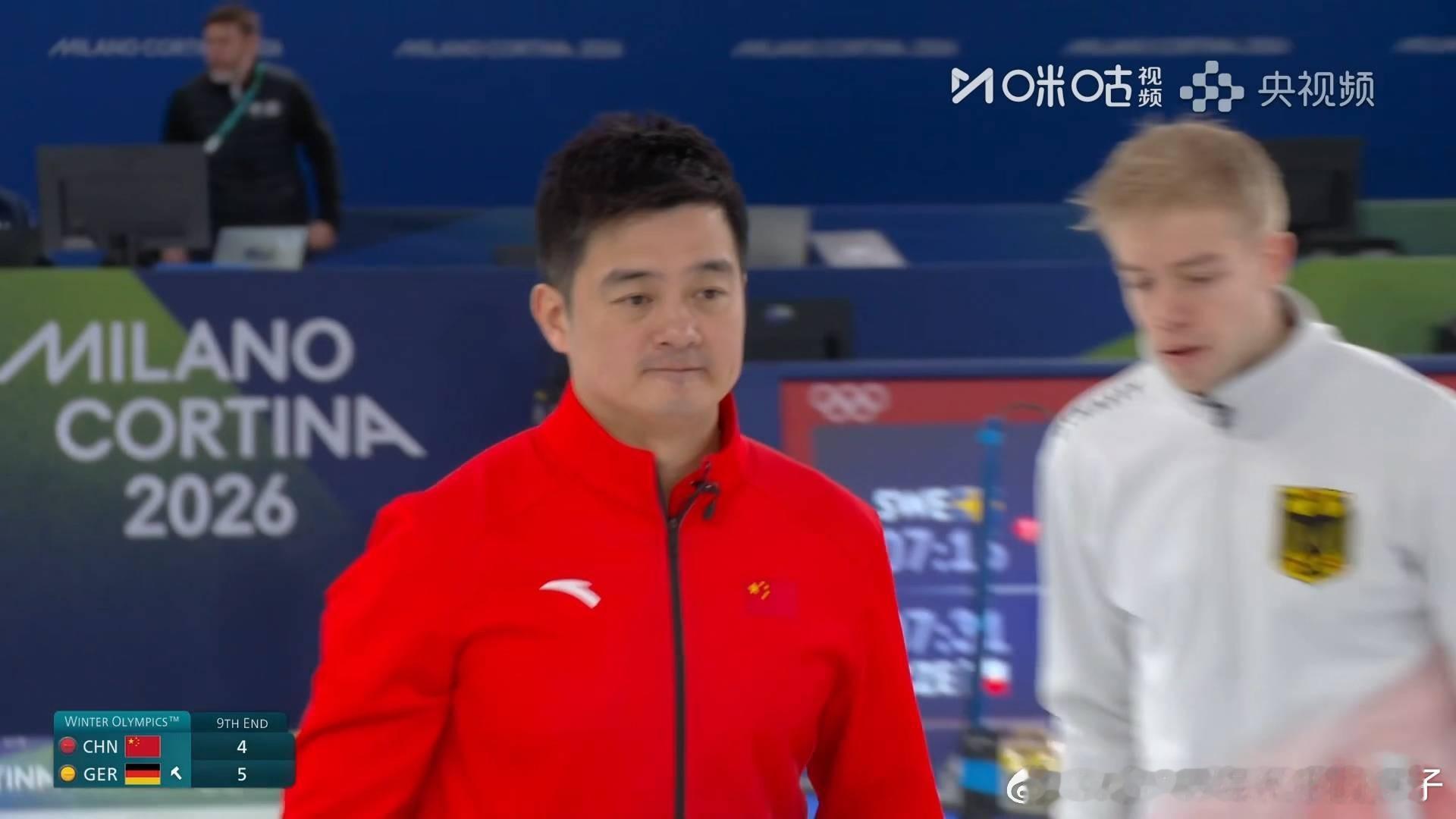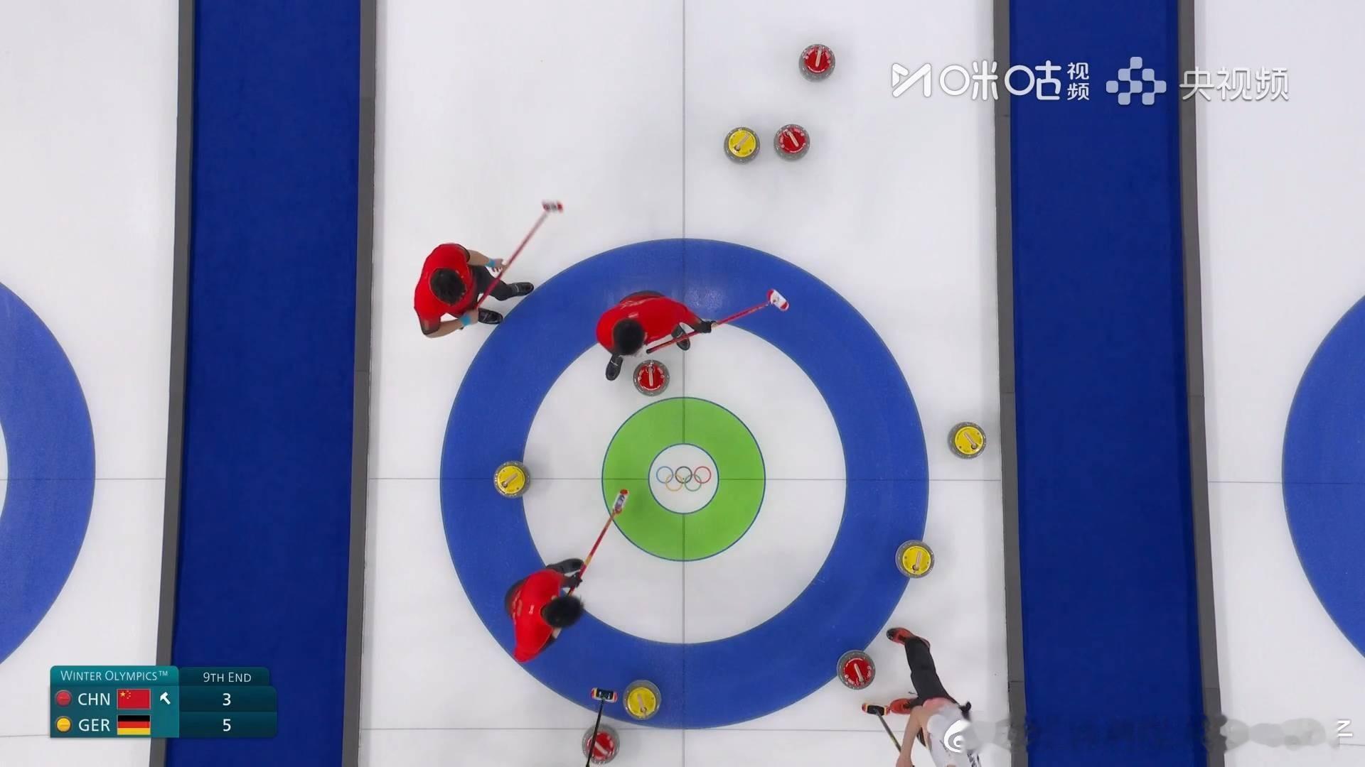 中国冰壶男队vs德国米兰冬奥会第九局打定后手1分中国队4比5落后德国队先手进入