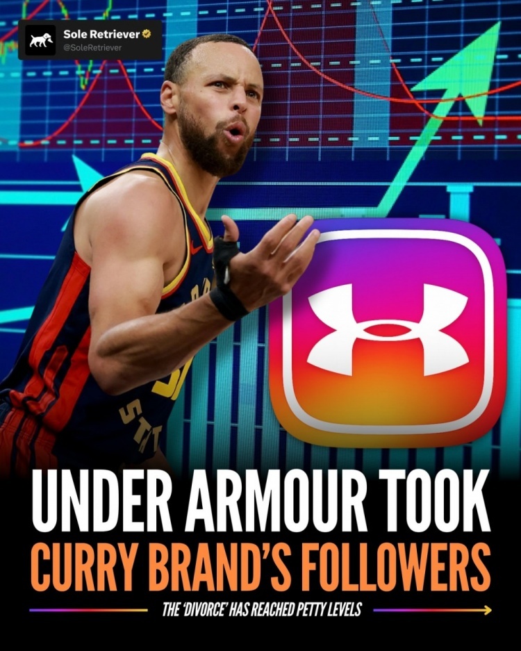 球鞋媒体Sole Retriever报道,UA将库里品牌Curry Brand的将近50万粉丝转移到了他们旗下的篮球账号UA Basketball。