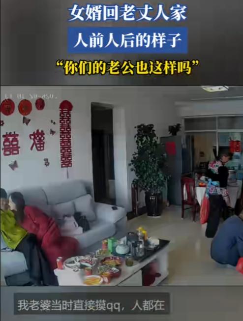 这绝对是新婚燕尔,新鲜劲还没过呢。 在老丈人家,没人时,小两口时不时亲一亲。有人时,女婿就害羞得不行,赶紧推开妻子,保持距离。 大红的喜字还在,还没有带娃的烦恼,还没有柴米油盐酱醋茶的烦恼,感情甚好,恨不得像连体婴儿一样黏在一起。 刚结婚就这样腻歪,再过二十年,到了中年,两人能坐这么近就不错了!过来人都懂!