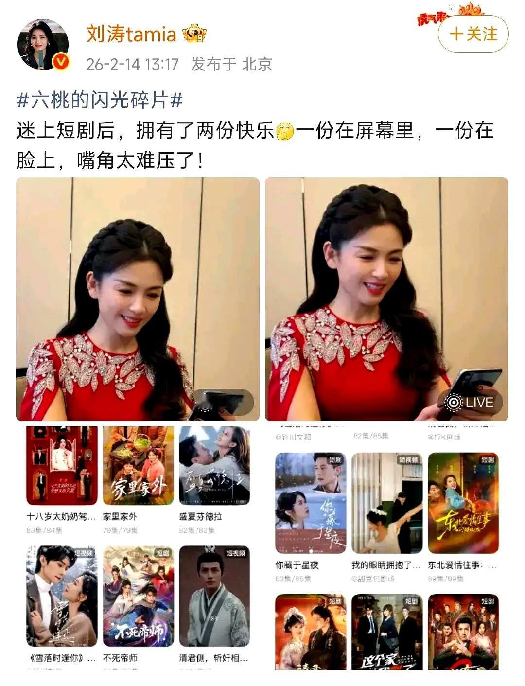 情人节那天的热搜榜突然蹦出“刘涛刷短剧上头”,点进去才发现她穿着大红礼服窝在沙发上狂刷手机,笑得像刚领到节日红包,可这份快乐并非玫瑰或钻戒带来的浪漫,而是几分钟一集的大女主短剧把这位《琅琊榜》《欢乐颂》的正剧担当也拿捏了. 别小看这股“碎片追剧”浪潮,QuestMobile《2023移动互联网半年报告》显示去年国内短剧用户突破4亿,人均每日停留逼近40分钟,平台对头部项目的分账能冲到上亿,在流量寸土寸金的当下,短剧像时间刺客一样切走我们的碎片注意力,不管你是地铁里的上班族还是镜头前的明星,都得乖乖点开下一集. 从刘涛的立场看,这或许不只是“刷上头”,她新剧收视一般,而短剧拍三五天就能上线回血,去年的《逃出大英博物馆》花不到5万却收获数亿播放的例子摆在眼前,资金方赚快钱,演员抓曝光,刘涛的“沉浸式观看”像一次无声带货,把“观众也是用户,演员也是观众”的商业闭环表演给我们看. 问题来了,当短剧用极高更新频率和爽点逻辑抢占时间,我们会不会在瞬时快感里渐失对长剧的耐心,质量监管和分级推荐能否跟上,原创者还能不能分得蛋糕,观众怎样做到“上头”不至“上瘾”,刘涛的热搜或许只是娱乐插曲,但留给行业和用户的考题才刚翻开.