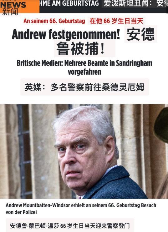 英国前王子安德鲁被捕据英国广播公司今天(2月19日)报道,英国国王查尔斯三世的弟弟安德鲁因涉嫌担任公职期间行为不端而被警方逮捕。据报道,安德鲁涉嫌在担任英国贸易特使期间与爱泼斯坦分享机密文件。美国近期解密的文件显示,安德鲁曾向爱泼斯坦转发涉及亚洲贸易访问的政府机密报告。此前多名受害者指控安德鲁通过爱泼斯坦的"萝莉岛"实施性侵,其中核心证人弗吉尼亚·朱弗雷于2025年自杀身亡。