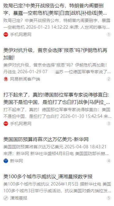 德国那位军事专家说得够直白:美国不是怕中国,是怕打了也白打。慕尼黑联邦国防军大学教授托马斯·马萨拉却道透了中美军事博弈的核心逻辑——不是谁的拳头更硬,而是谁都承受不起冲突的代价,哪怕两军确实存在差距,可一旦动手,面临的威胁注定是对等的。 麻烦看官老爷们右上角点击一下“关注”,既方便您进行讨论和分享,又能给您带来不一样的参与感,感谢您的支持! 慕尼黑联邦国防军大学研究北约战略与大国冲突的专家托马斯・马萨拉,点透了当下中美军事博弈的核心逻辑。美国对中国并非单纯的军事畏惧,而是清楚与中国开战只会落得 “打了也白打” 的结局,即便两军纸面军力有差距,真动手双方面临的威胁必然对等,谁也扛不住冲突带来的代价。 单看全球军事布局和印太地区的部署,美国依旧握着表面优势,航母战斗群、先进隐身战机和海外军事基地的配置堪称豪华。但现代大国对抗拼的从不是一时的装备亮眼,而是持续作战和后勤保障的硬实力,这正是中美军力的核心差距所在。 中国拥有全球最完整的军工全产业链,从武器研发到生产补给能实现自主闭环,战时物资和装备的补充效率有十足保障。反观美国,军工产业早已出现空心化问题,军舰建造周期不断拉长,现役装备的维护成本高企,连基础的弹药储备都跟不上大国冲突的消耗需求。 西太平洋的地理格局,让中国在区域博弈中占尽 “家门口” 作战的优势。从本土到周边海域的资源投送距离短、效率高,补给线稳定且易守难攻,各类区域拒止武器能精准覆盖关键海域,让远道而来的外部势力难以靠近。 美国在西太平洋属于典型的跨洋作战,兵力和物资要跨越整个太平洋投送,漫长的补给线本身就是致命短板,极易成为打击目标。其高端武器装备的供应链还高度依赖海外,核心原材料和零部件的生产环节存在大量缺口,战时根本无法保证稳定供应。 美国多家智库的兵推和报告都印证了这一短板,传统基金会的 “潮汐波” 兵推显示,美军精确制导弹药仅能支撑 5 至 7 天的高强度作战。战略与国际问题研究中心也指出,美军精确制导弹药的核心材料供应链存在致命漏洞,战时大概率会面临供应中断的困境。 如今的美国,早已没有了应对高烈度大国冲突的国内基础,通胀高企、债务压顶加上两党持续党争,让其政治承受力大幅下滑。2025 财年美国国防预算达 8950 亿美元,创下新高的巨额军事开支,持续挤压民生领域的投入,民众不满情绪不断累积。 2026 年初,美国超 100 个城市爆发了反战示威游行,民众纷纷反对政府以武力手段干预别国事务,国内反对军事冒险的声音越来越高。超过七成美国民众不支持政府新的军事干预行动,这意味着美国政府若贸然发起冲突,根本得不到国内的民意支撑。 托马斯・马萨拉强调,现代大国之间的正面冲突,早已没有绝对的胜利者,只会迎来多方受损的结局。中美作为全球前两大经济体,即便双边贸易额有所变化,依旧在全球产业链和供应链中深度绑定,双方的经济联系牵一发而动全身。 中美冲突带来的影响,绝不仅限于两国之间,而是会直接冲击全球消费电子、半导体等关键产业的供应体系,让本就复苏乏力的全球经济雪上加霜。无论是美国还是中国,都清晰认知到冲突带来的灾难性后果,这是双方的共识,也是底线。 也正因如此,理性制衡战略冲动、主动避免正面冲突,成为中美双方现阶段的核心战略选择。美国清楚,即便有军事优势,也无法在西太平洋对中国形成压倒性压制,更不可能以低成本赢得冲突。而中国的防御策略,本就以捍卫国家核心利益、遏制外部干预为目标。 说到底,美国对中国的忌惮,从来不是怕打不过,而是怕打赢了也得不偿失,怕一场冲突拖垮本国的经济和国际地位。中国不惹事但也绝不怕事,在家门口的区域内,有能力让任何外部势力付出难以承受的代价,这就是最硬的底气。 这场军事博弈的关键,早已不是谁的拳头更硬,而是谁的体系更稳固、谁的承受力更强、谁更能守住自身的核心利益。在这样的格局下,美国所谓的军事优势难以转化为实际胜势,“打了也白打” 也就成了必然的结果,这也是中美能保持战略克制的根本原因。