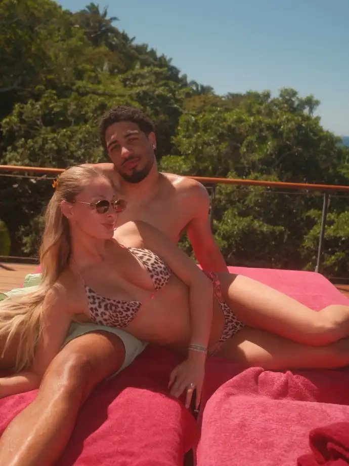 玩手机是一件很私人的事情没有全明星的日子,哈利伯顿也很幸福!他忙着和未婚妻琼斯在