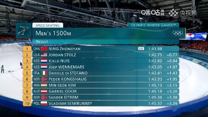 米兰冬奥会速度滑冰男子1500米决赛,中国选手以1分41秒98的成绩,刷新奥运纪录夺得冠军。这也是本届冬奥会上,中国体育代表团收获的第三枚金牌,宁忠岩个人的第三块奖牌!