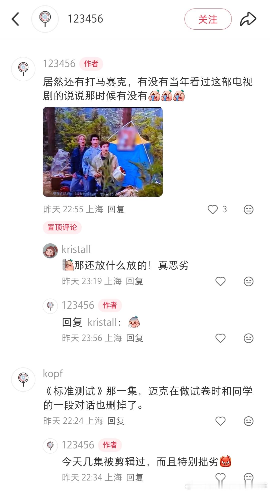 网友吐槽最近电视台重播《成长的烦恼》各种删减和打码。