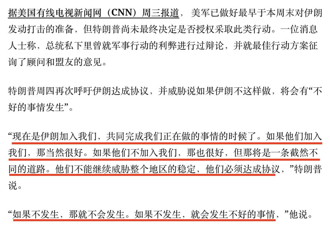 “专家一致认为:伊朗核设施已被摧毁。”这条消息依然挂在白宫网站上。既然如此,美国为何还要以核问题来威胁伊朗呢?因为特朗普想让伊朗“加入美国的事情”。 本周四,特朗普在他创办的“和平委员会”首次会议上说:“现在是伊朗加入我们,共同完成我们正在做的事情的时候了。如果他们加入我们,那当然很好。如果他们不加入我们,那也很好。但那将是一条截然不同的道路。他们不能继续威胁整个地区的稳定。他们必须达成协议——如果协议无法达成,我或许可以理解。如果协议无法达成,那就无法达成。但如果协议无法达成,将会发生糟糕的事情。” 所以重点就在于,特朗普要求伊朗加入怎样的“事情”?拿10亿美元加入他的“和平委员会”?美国还未对伊朗开战,但花在威胁上的钱都不止这么多了。 所以对伊朗来说,这是一个宝贵的机会——紧紧抓住特朗普说的话,要求美国回答“让伊朗加入什么?” 美国现在有好几个犯罪团伙,民主党的、共和党的、特朗普的、军工综合体的、华尔街的、美联储的、美国以色列公共事务委员会的……但归根结底,都是爱泼斯坦的。 爱泼斯坦头像应该印在美元上。 特朗普暗示,有关伊朗的决定可能在未来10天内做出。CNN的消息认为,美国甚至在本周末就会采取行动。 浑水报告:美国不敢打伊朗,就是不敢。 对了,我在今天的视频报告里提醒特朗普——小心卢比奥点燃他的屁股。然后特朗普就在会议上说:“如果卢比奥继续在世界舞台上盖过总统的风头,他可能就出局了。”你看,最顶级的CIA一定是我的粉丝。你出来,给我发个首评。
