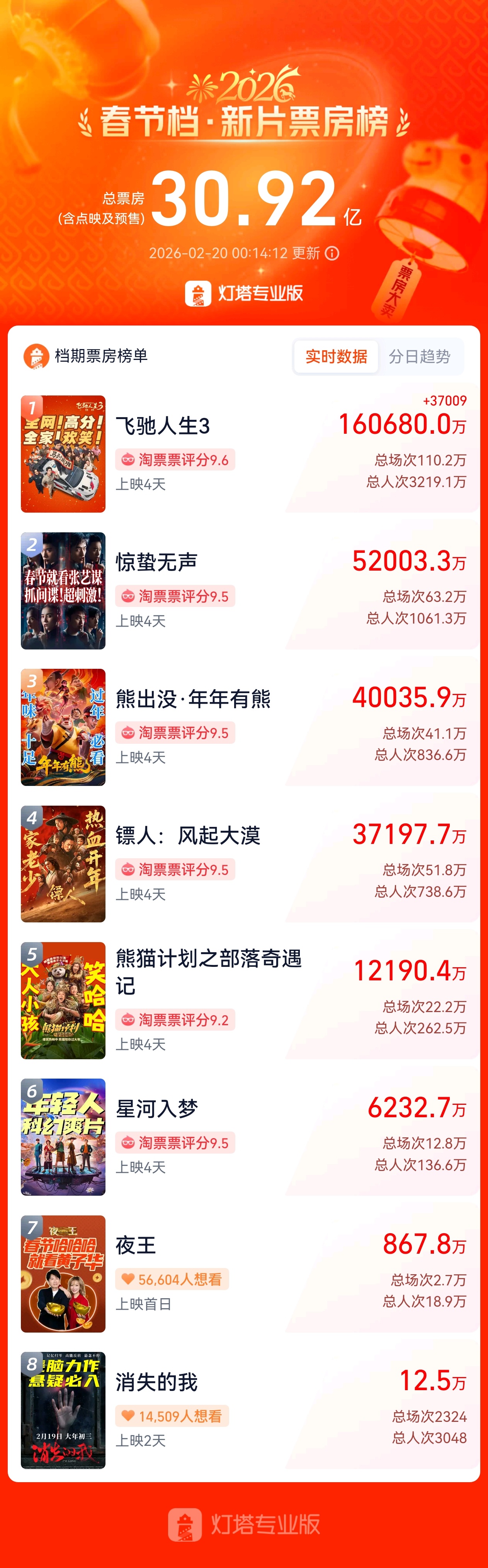 整体来看,今年的春节档前三天总票房刚突破30亿,远低于去年同期,回顾去年春节档有《哪吒之魔童闹海》《唐探1900》等阖家欢电影,《封神第二部:战火西岐》《射雕英雄传:侠之大者》也都是大IP,感觉今年的观影氛围有些差,观影人数也是断崖式下跌,大家咋不去看电影了呢?