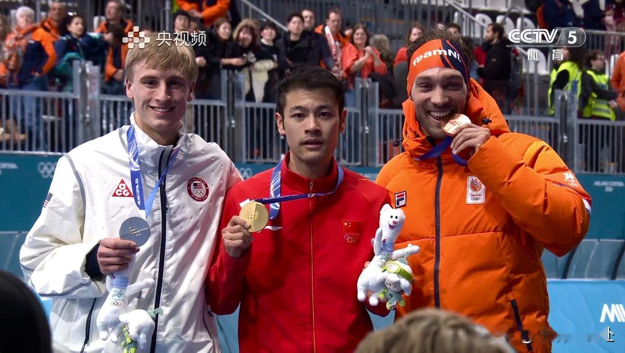 银牌获得者开心笑了,铜牌获得者咬着奖牌笑了,而金牌获得者…… 要知道,画面左边的银牌得主,是美国天才选手斯托尔兹,在米兰冬奥周期1500米项目上五站全胜,统治力极强,来到米兰,已夺2枚金牌的他,状态正盛,是1500米项目夺冠的大热门。 而画面右边的铜牌得主,是平昌冬奥,北京冬奥两届奥运金牌获得者的荷兰选手内斯,冲着三连冠的伟业而来。 是谁让这两人没有拿到金牌,但还很开心……是中国选手宁忠岩,用比赛成绩让对手钦佩,输得心服口服。 这是一场真正的巅峰对决,他们都拿出了很好的状态,都打破了该项目的奥运纪录,但宁忠岩滑得更快,是唯一打开1分42秒大关,以1分41秒98的成绩夺冠,并打破奥运会纪录。