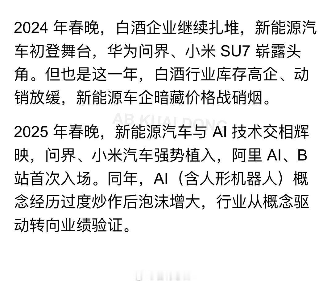 看到一个有意思的观点,似乎每轮春晚的广告,都是行业的超级风向标?不知道 AI 这波能加速到什么时候。