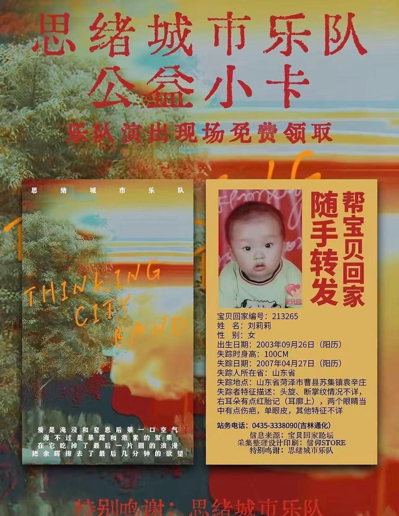 今日大年初三,思绪城市乐队空降波西米亚Live house。现场免费发放“宝贝回家”公益小卡,你的每一次随手转发,都能为走失儿童点亮希望。摇滚不只是态度,更是责任。,让我们用音浪,为宝贝回家助力。拒绝沉默,用行动发声!🔥