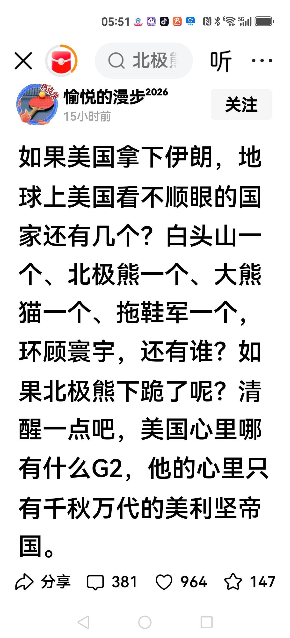 美国最大的弱点是什么? 【国内大咖进步了】 胡锡进谈美国打伊朗,又把希望寄托在伊朗身上,祈求攻打不顺利,为我们赢得宝贵时间,上一个唇亡齿寒是俄罗斯。 高志凯分析美国打伊朗,关键就是伊朗打以色列,一旦美国动武,伊朗立刻报复以色列,所谓铁穹能否顶住伊朗的狂风暴雨? 瑞哥认为国内大咖至少还是进步了,要是以往肯定又是说美国虚张声势,不敢打伊朗,因为一旦动武,以色列就不存在了。 还是奉劝老胡,别把希望寄托在别人身上,谁也靠不住美国对伊朗开战 俄罗斯都在转向,更别提伊朗了。