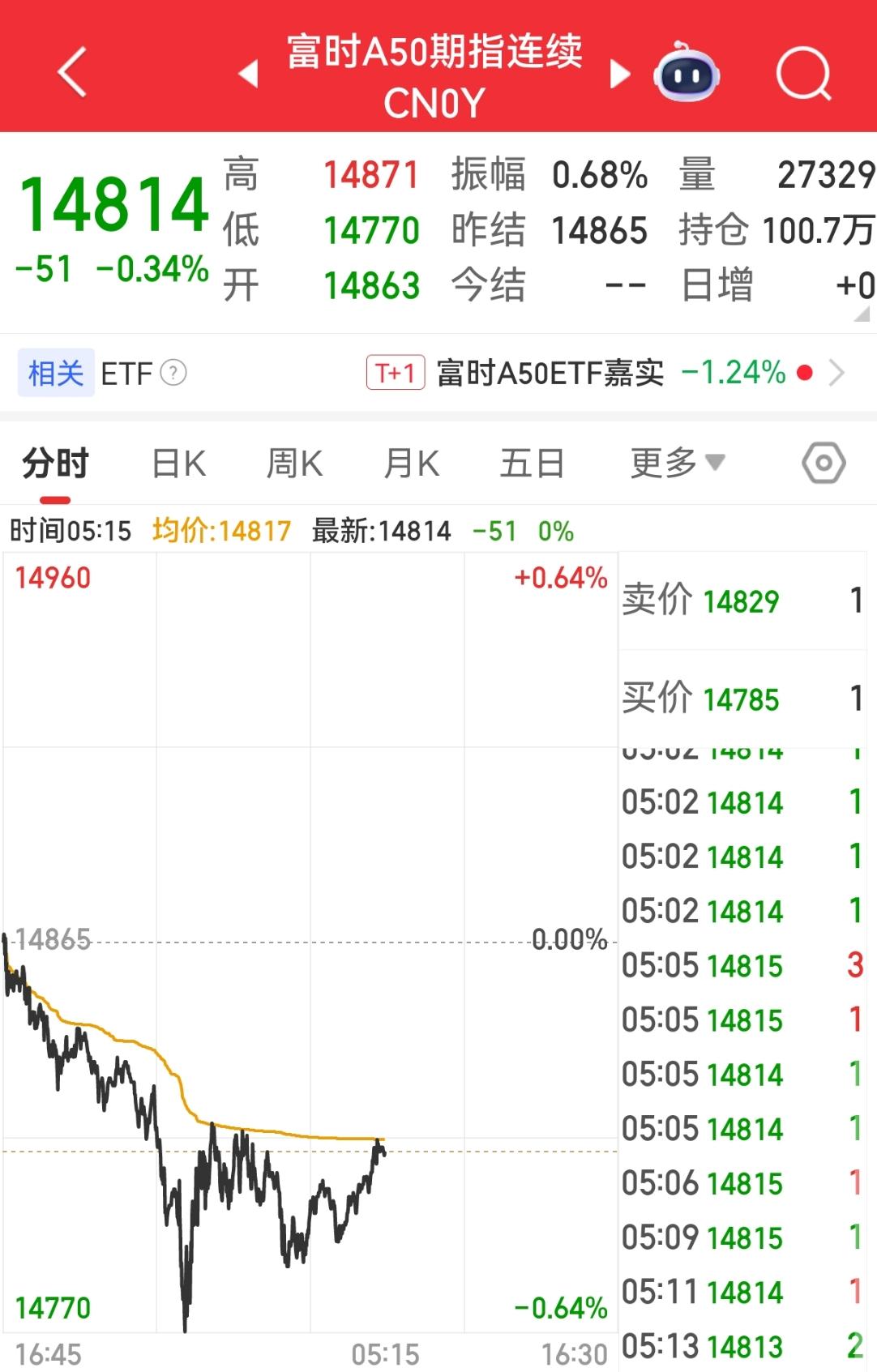 【周四外围市场:美股三大指数集体收跌 利弗莫尔中概股龙头指数收跌 富时A50期指连续夜盘收跌】 周四美股三大指数集体收跌,道指跌0.54%,纳指跌0.31%,标普500指数跌0.28%。大型科技股多数收跌。 利弗莫尔中概股龙头指数收跌0.54%。 富时A50期指连续夜盘收跌0.34%,报14814点。