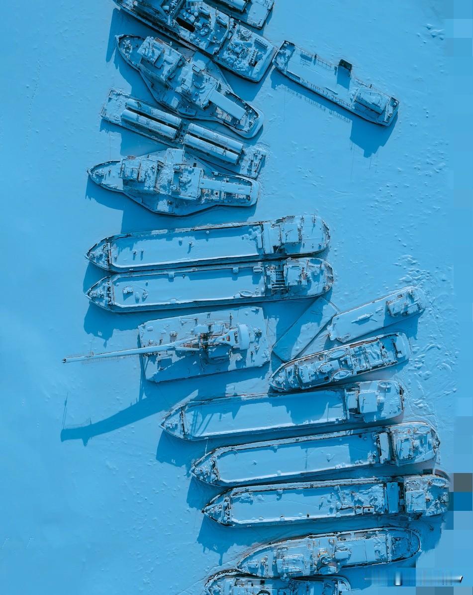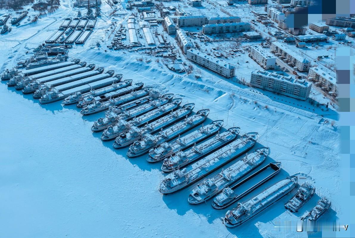 白蓝红莫斯科的各条内河差不多均有个舰队,这个雅库特的勒拿河亦不例外,具体的说在这条河上白蓝红莫斯科同样部署着拥有100余艘船只/军舰的内河舰队,不过在冬天河流封冻以后,白蓝红莫斯科的雅库特勒拿河舰队显然不能再正常航行。 具体的说,每到冬天河封冻的时候该舰队的大小军舰会被拖上其冬季营地附近的岸边或者冰面进行维护保养,以利于来年春天的航行和执行任务。 于是,每到勒拿河舰队冬季维护保养的季节,其冬季营地附近会呈现一个奇特的情景:大量的船只不再航行而是停留在岸边和冰面上覆盖着积雪,婉如科幻电影里的镜头。