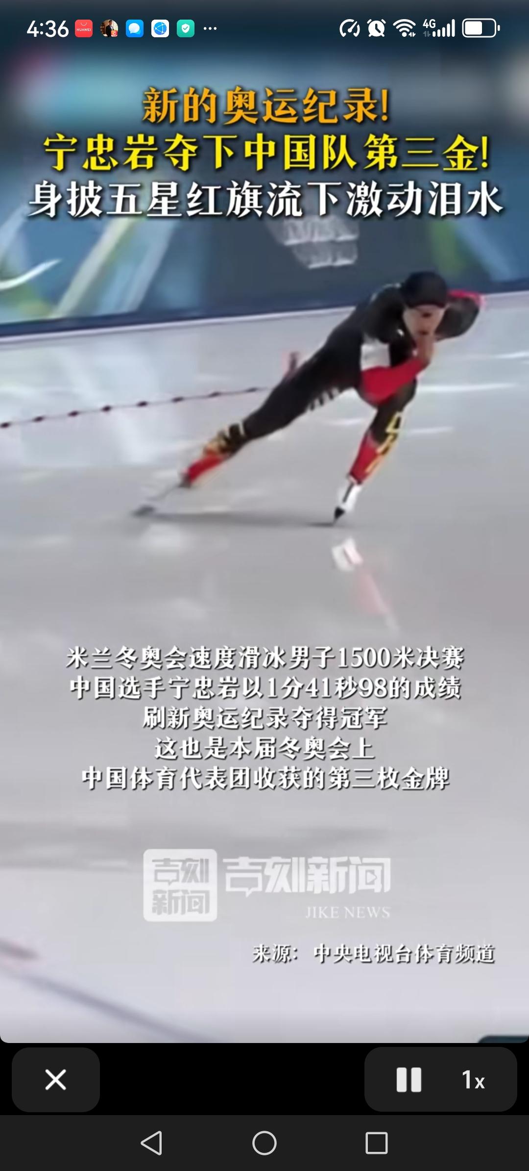 我国选手宁忠岩获得速度滑冰1500米金牌,并且打破了冬奥会记录,这也是我国运动员在本届米兰冬奥会上获得的第3枚金牌,目前中国代表团已获得3金3银4铜,排名金牌榜第12位。 祝贺,热烈的祝贺!