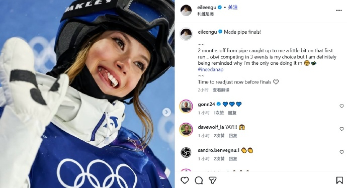 “2个月没有接触U型池让我稍微有了点麻烦……显然参加三项比赛是我自己的选择,但我也确实再次想起了为什么我是唯一在做这件事情的人~~是时候在决赛之前重新调整了。”