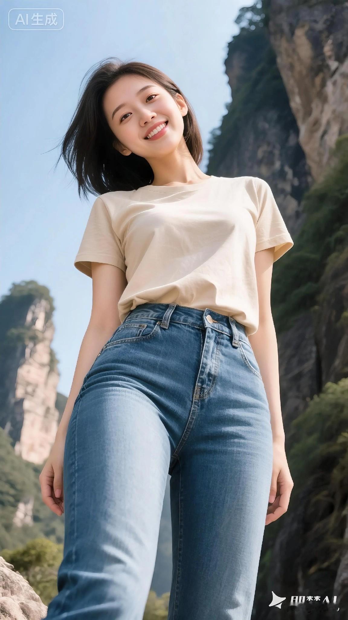 阳光下的她,笑容清澈,浅米色T恤与牛仔裤,轻松勾勒出青春的模样。 所以简单,就是