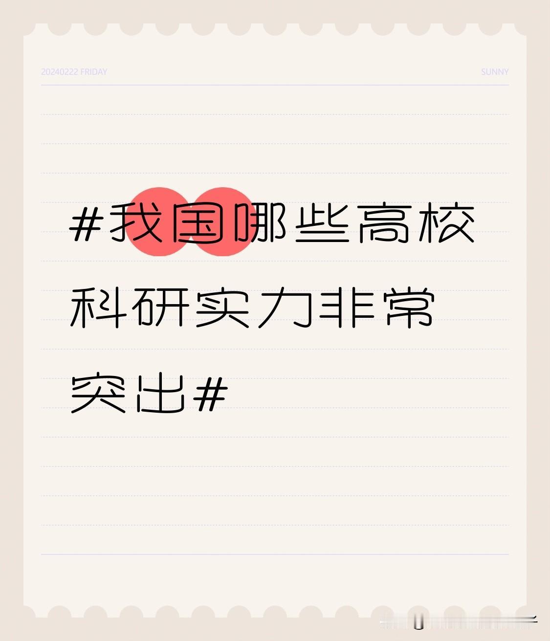 我国哪些高校科研实力非常突出 我国科研实力突出的高校不少。第一梯队当属清北、华五和国科大。 清华大学是工科龙头,工程、计算机等领域全球领先,有量子反常霍尔效应等顶尖成果,20多个国家重点实验室,科研经费超180亿。北京大学是基础科学的天花板,文理医工全覆盖,量子信息等前沿领域有突破。 中科大小而精,物理、量子信息等全球领跑,有量子通信“墨子号”等标志性成果,自然指数亚洲高校第一。此外,国科大凭借中科院背景,科研实力也不容小觑。华东五校学科实力和国际影响力也很强,在科研上各有建树。