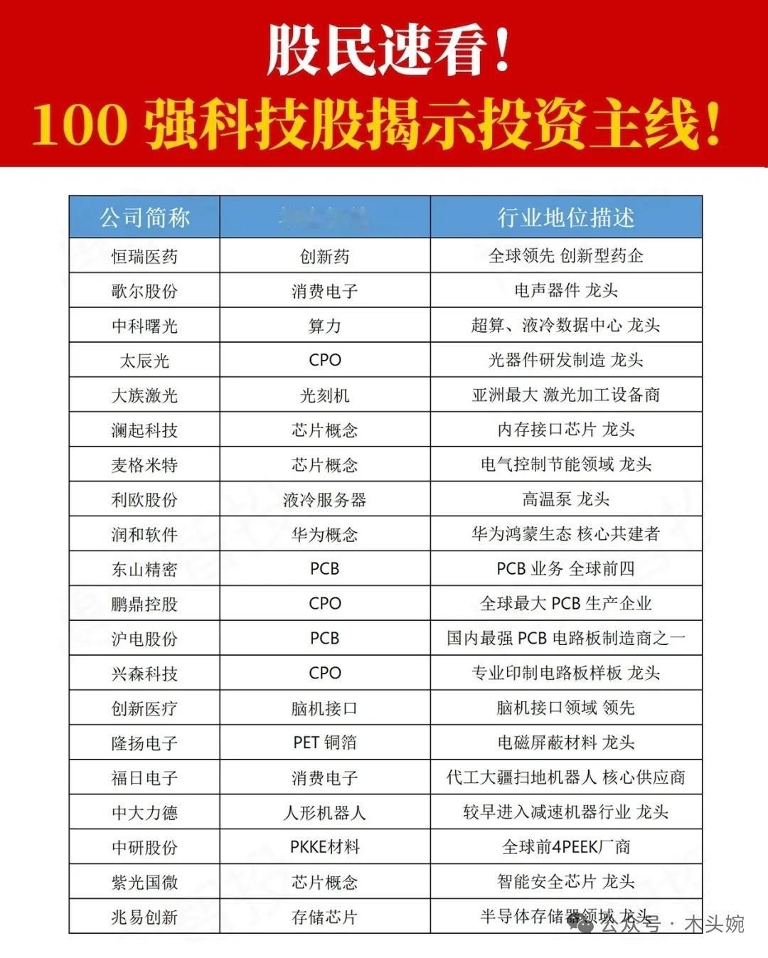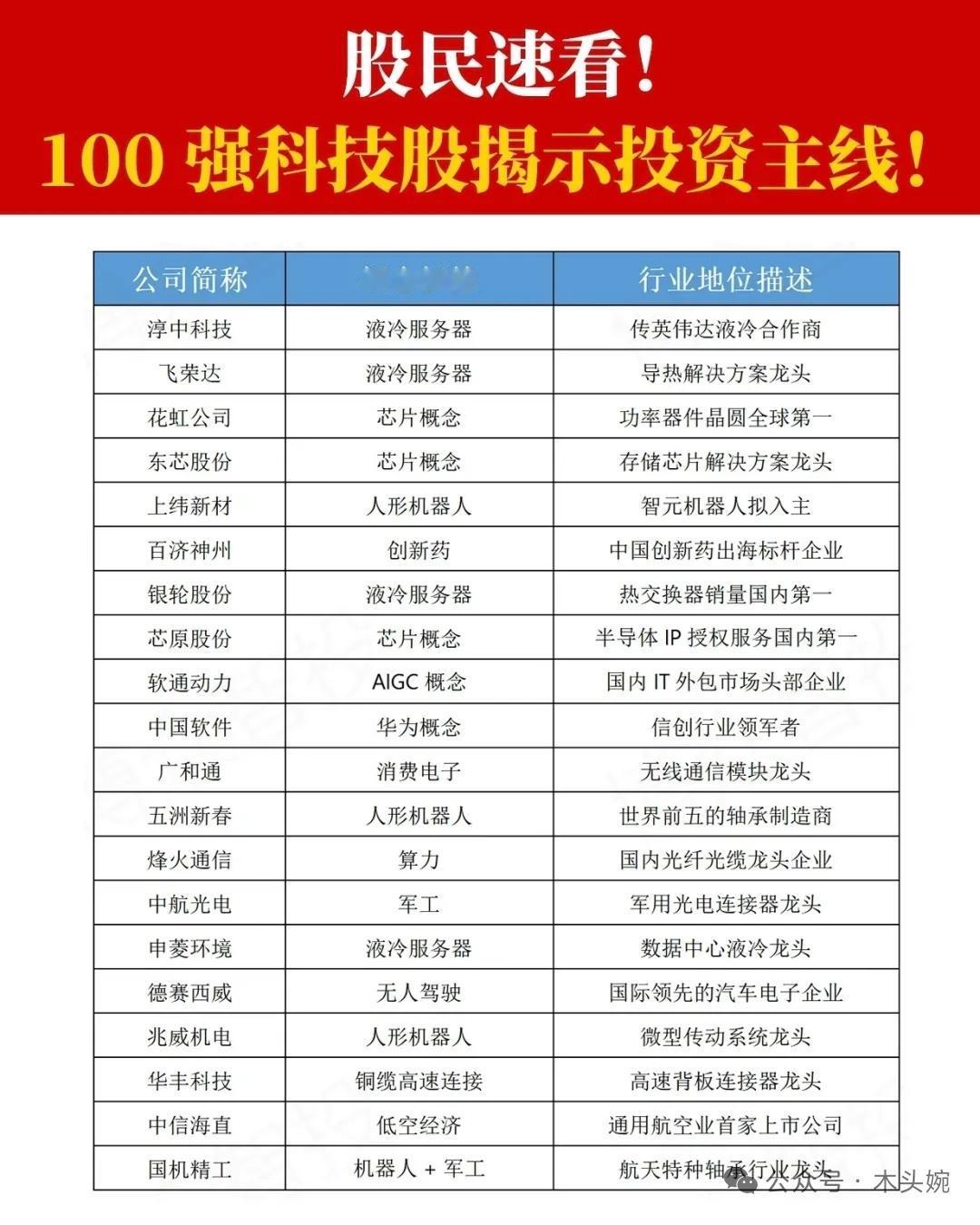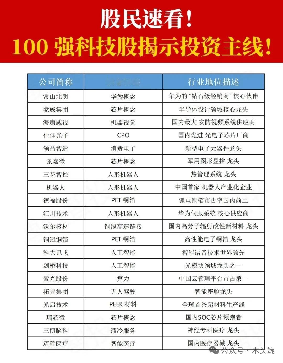 科技主线再爆发!这100只硬核科技股,藏着2026年最强投资主线! 每一家都是细分领域的绝对王者,是科技浪潮中最具爆发力的核心资产。哪些个股值得重点关注? AI算力:浪潮信息、中科曙光、紫光股份…… CPO光模块:中际旭创、新易盛、天孚通信…… 芯片制造:中芯国际、海光信息、兆易创新…… 液冷服务器:英维克、飞荣达、申菱环境…… 人形机器人:三花智控、汇川技术、中大力德…… ⚠️ 风险提示:市场有风险,投资需谨慎。以上内容仅供参考,不构成任何投资建议。