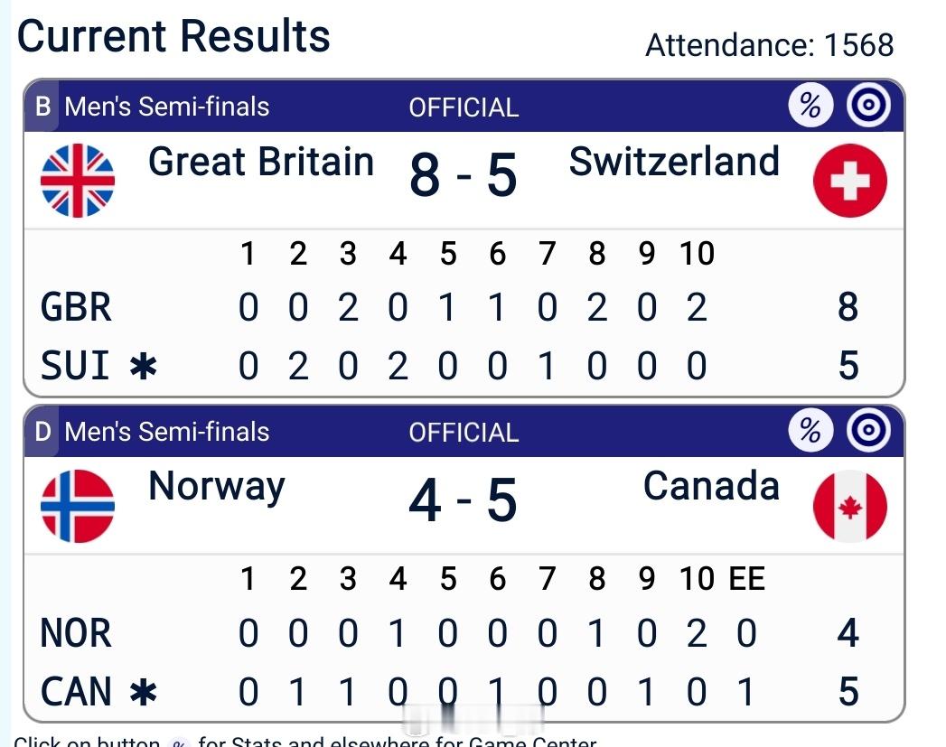 2026年米兰科尔蒂纳冬奥会🥌男子半决赛英国8-5瑞士加拿大5-4挪威施瓦勒