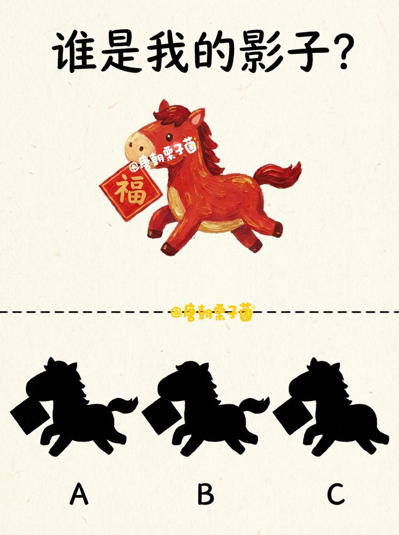 影子配对|眼力训练游戏马年限定第(3)期 谁是小马的影子[鞭炮R][庆祝R][烟花R] 宝子们是不是红包收到手软了[红包R][红包R][红包R] 祝大家一马平川事业顺,马到成功财运旺[发R][发R][发R] 放烟花当然要记录 我是春节主理人 脑洞大开 团建游戏 影子配对 找不同 找茬游戏 专注力 春节玩乐时刻