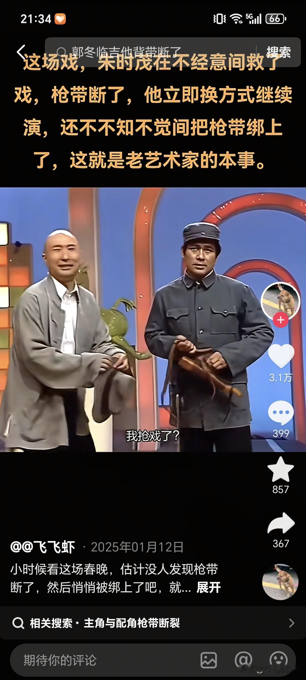 主角与配角这个小品看了好几遍了,今天才知道,这部作品还有这么一出。 演着演着,朱时茂配枪的皮带断了,然后神不知鬼不觉的系上了,确实很牛。 一开始,是斜着背的,后来坏了,朱时茂瞅准时机系上了,背带明显短了,反而喜剧效果更好了。