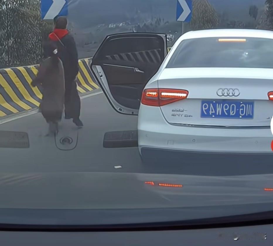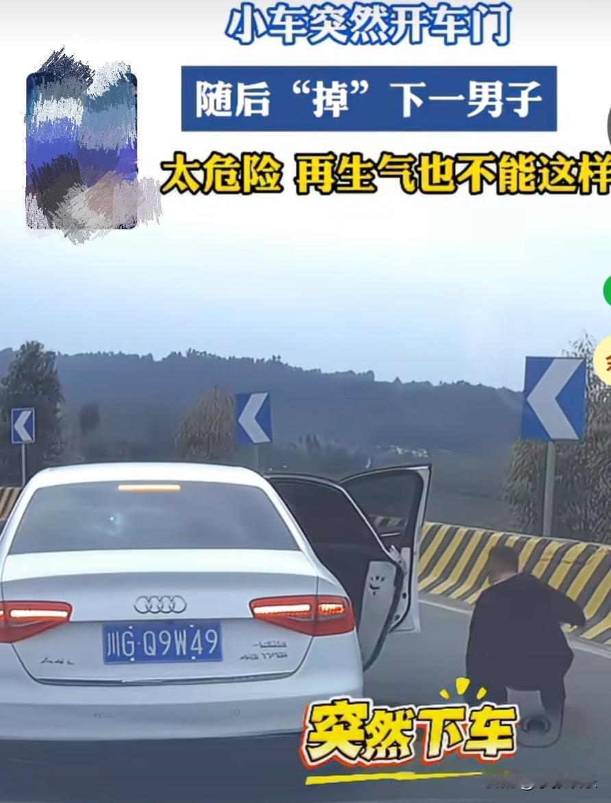 高速惊魂! 高速上,一辆白色奥迪车突然急刹,车门“砰”地弹开,一个大男人直接“掉”到了路面上! 后车司机吓得猛踩刹车,差点直接碾过去。 那是一个天色微亮的清晨,高速路上车流不算密集。一辆白色奥迪车(川A牌照)正行驶在一处有导流标志的路段,车速不算慢。 突然,奥迪车毫无征兆地开始减速,车身还没完全停稳,副驾的车门就被猛地拉开。 紧接着,一个穿着黑色外套的男子,像是被人推出来一样,整个人“掉”到了冰冷的路面上,重重地摔了下去。 这一幕,正好被后车的行车记录仪完整地拍了下来。 后车的女司机回忆说:“我当时离他的车特别近,就听见‘砰’的一声,一个人直接从车里滚出来,差点就滚到我的车轮子底下了。 我当时吓得魂都飞了,一脚把刹车踩死,心脏‘咚咚’跳得快从嗓子眼里蹦出来。” 车门大开的奥迪车里,还站着一个女人和一个孩子。女人探出头,脸上写满了惊恐和慌乱,孩子则被吓得躲在一边。 几个人站在高速路的车流里,身后是呼啸而过的汽车,每一秒都像在鬼门关前徘徊。 从画面里能看出来,这家人明显是在车上发生了激烈的争吵,情绪彻底失控,才做出了这种拿生命当儿戏的举动。 我们常说,冲动是魔鬼,但在高速路上,冲动就是死神。 再大的矛盾,再深的怨气,在生死面前都不值一提。那个从车里“掉”出来的男人,可能只是一时气昏了头; 那个开车门的家人,可能也只是被愤怒冲昏了理智。可他们忘了,高速路不是自家客厅,车门不是情绪的出口,每一次鲁莽的动作,都可能让一个家庭瞬间破碎。 真正的成熟,不是赢了争吵,而是懂得在失控的边缘及时踩下刹车。别让一时的脾气,毁掉一生的运气。再生气,也别拿命赌;再委屈,也别在高速上拿自己和家人的安全开玩笑。 高速惊魂瞬间 安全驾驶情绪管理 社会百态