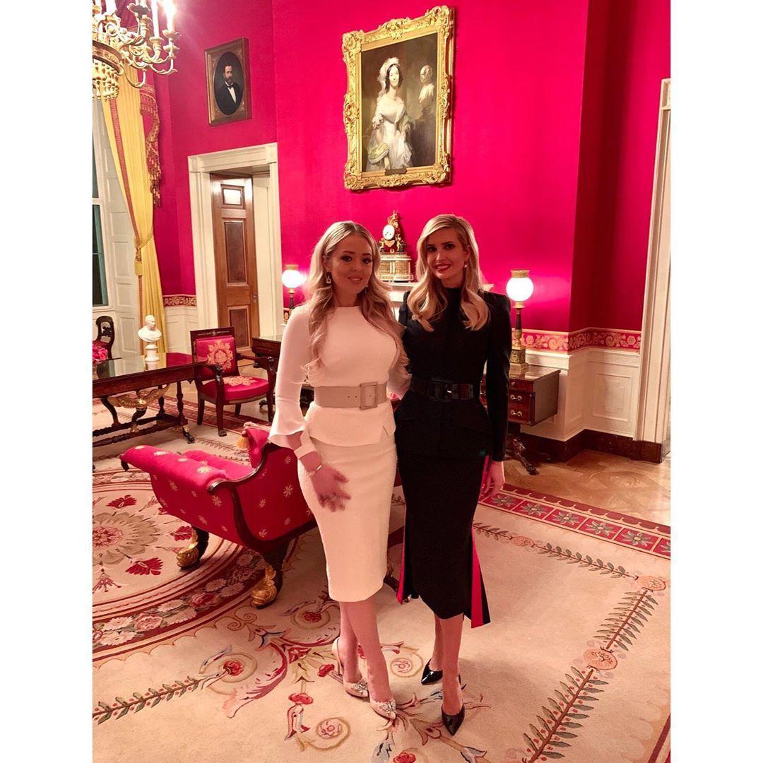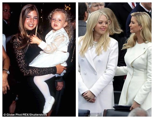 小时候的伊万卡抱着同父异母的妹妹,笑得很童真。长大后她们姐妹同框,两人身材都好好,毕竟她们的母亲都当过模特。