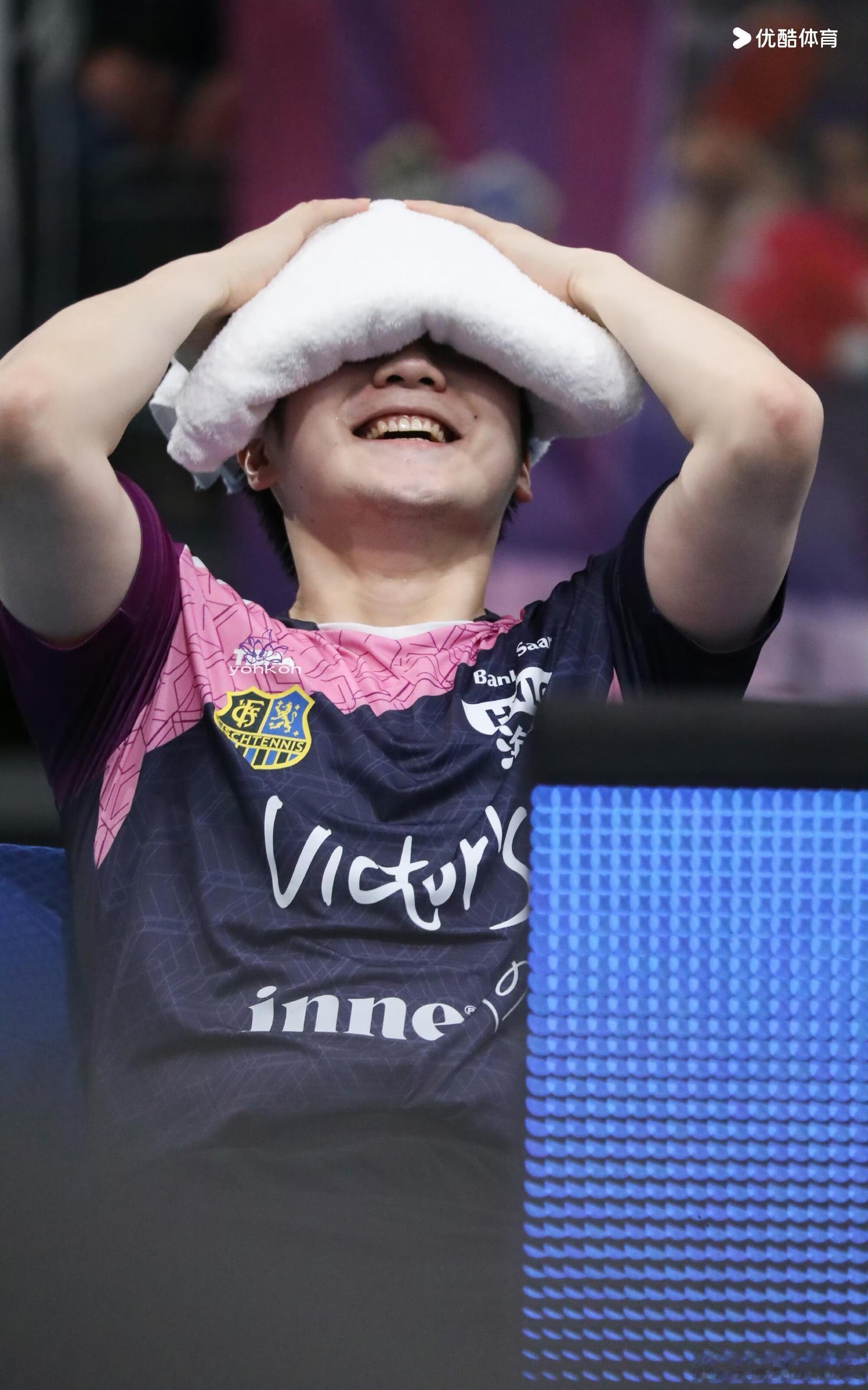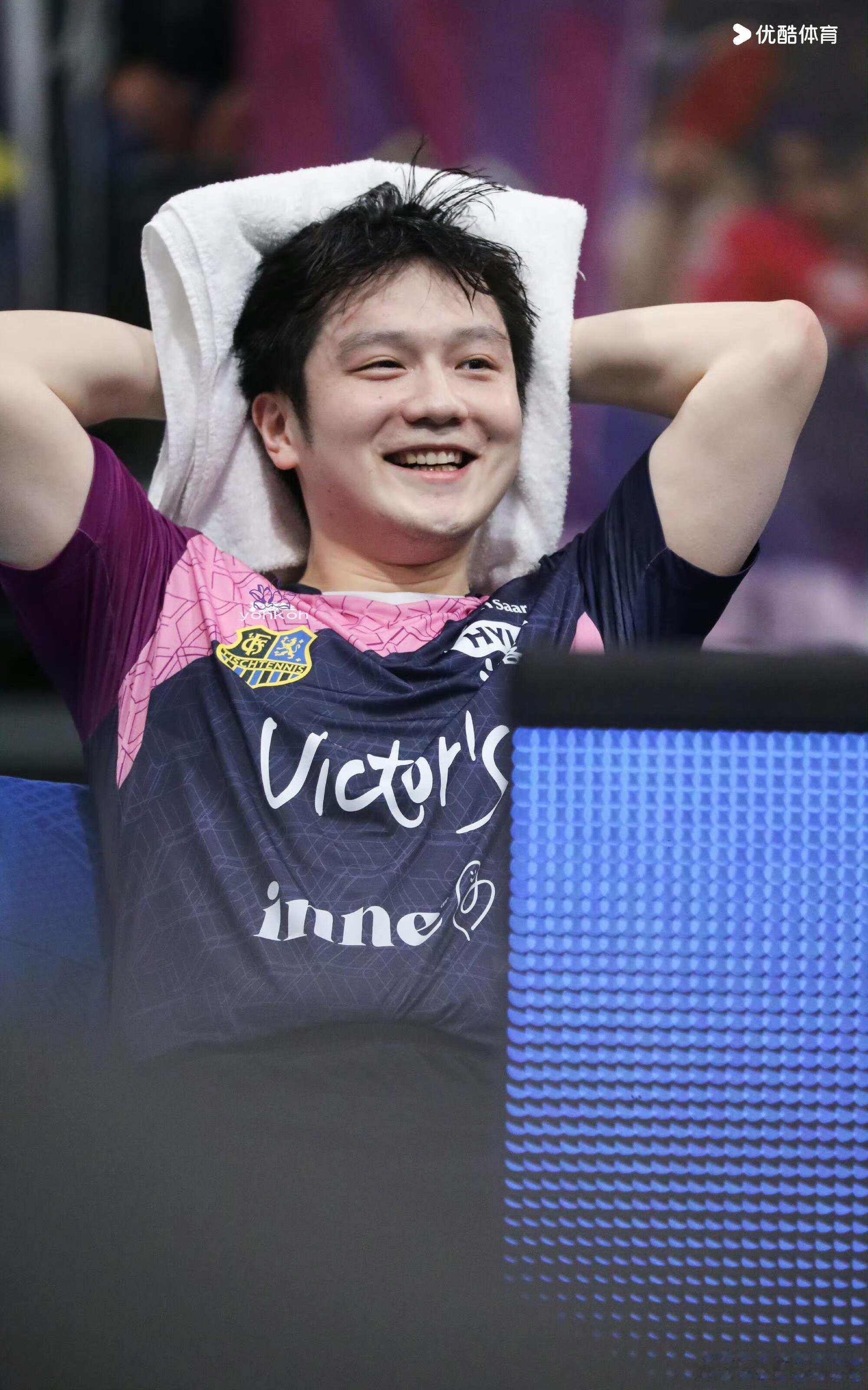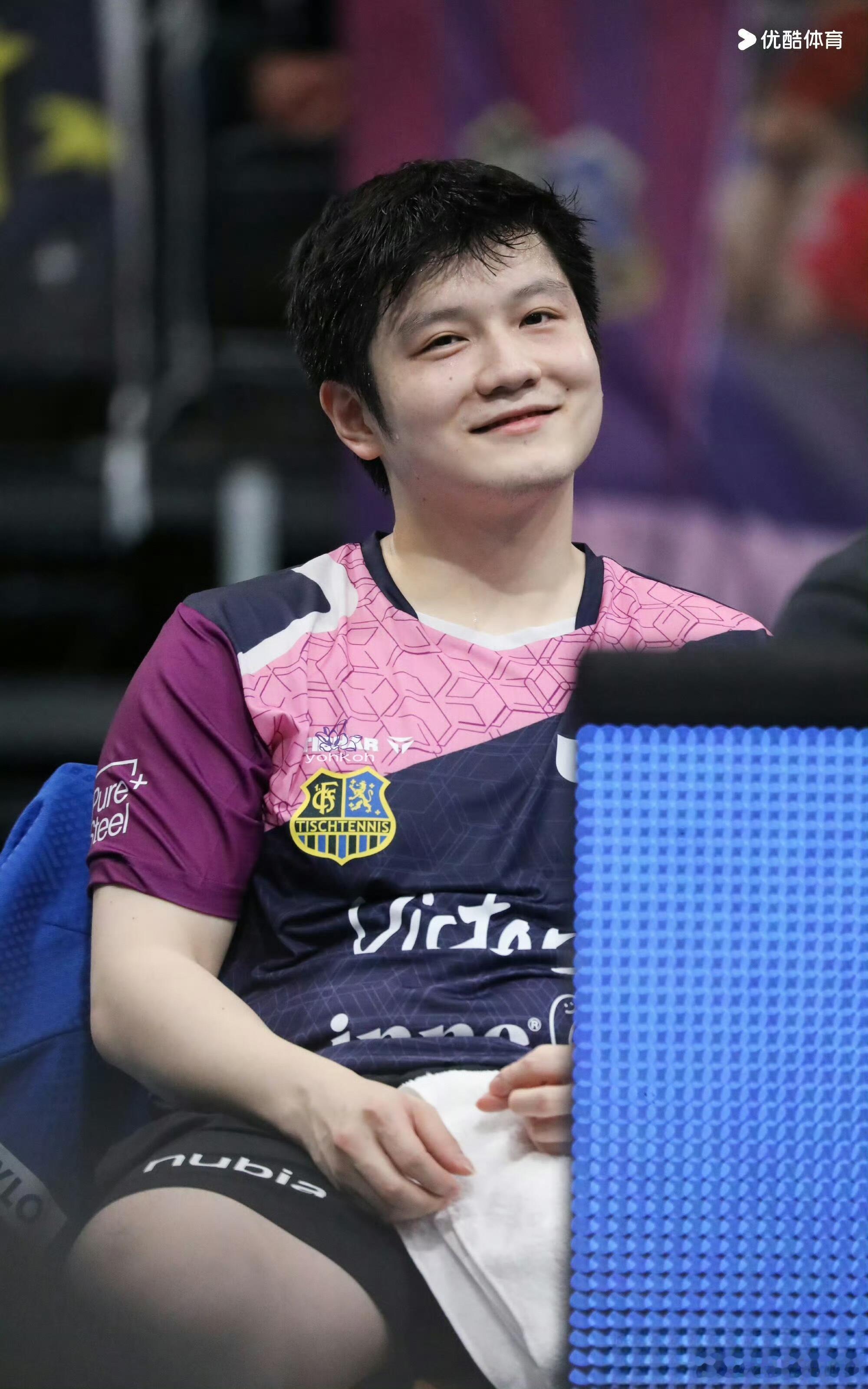 功夫熊猫的粉色战袍!樊振东笑的太开心了,竞技体育,输赢很正常。东哥被小莫逗得很开
