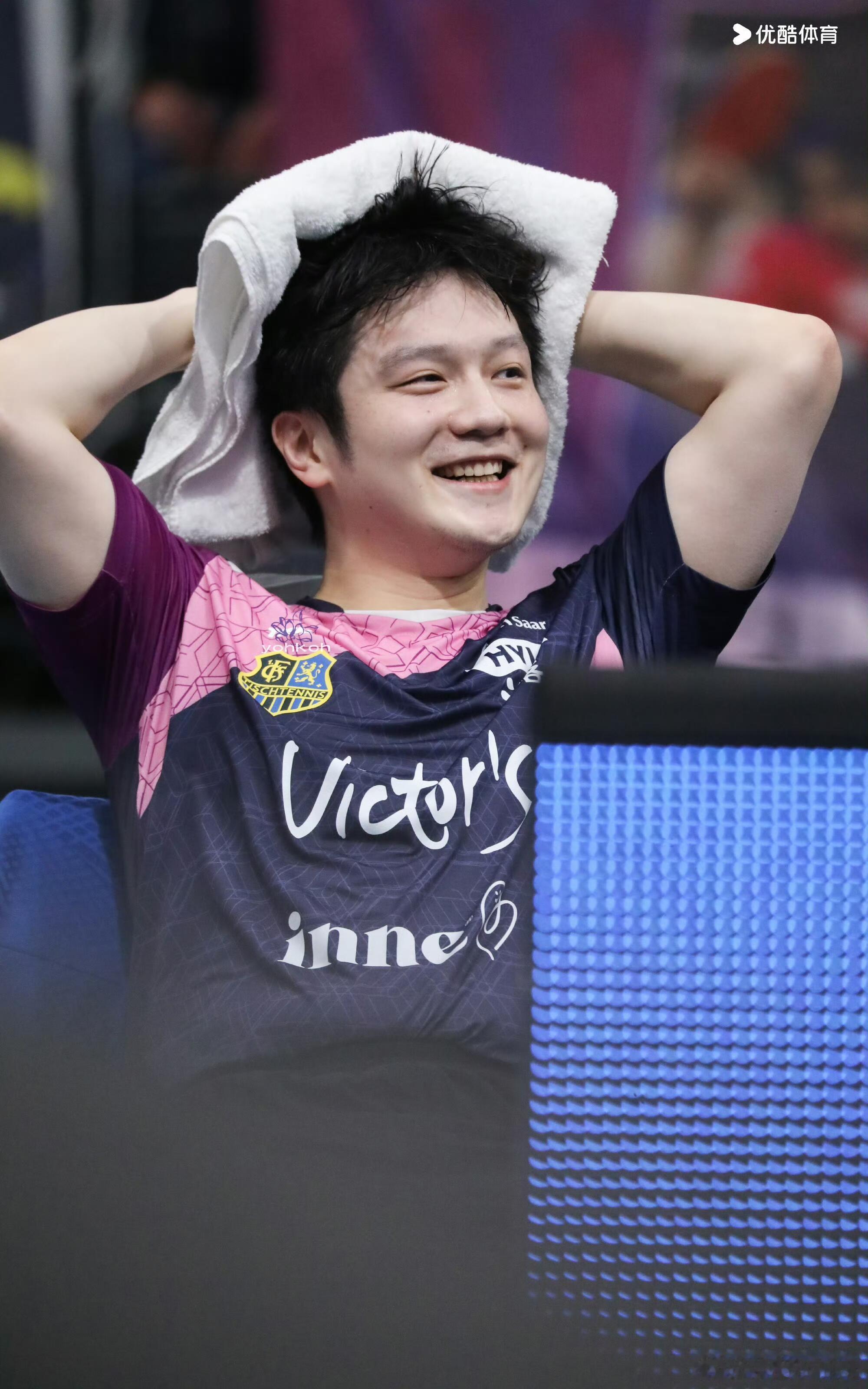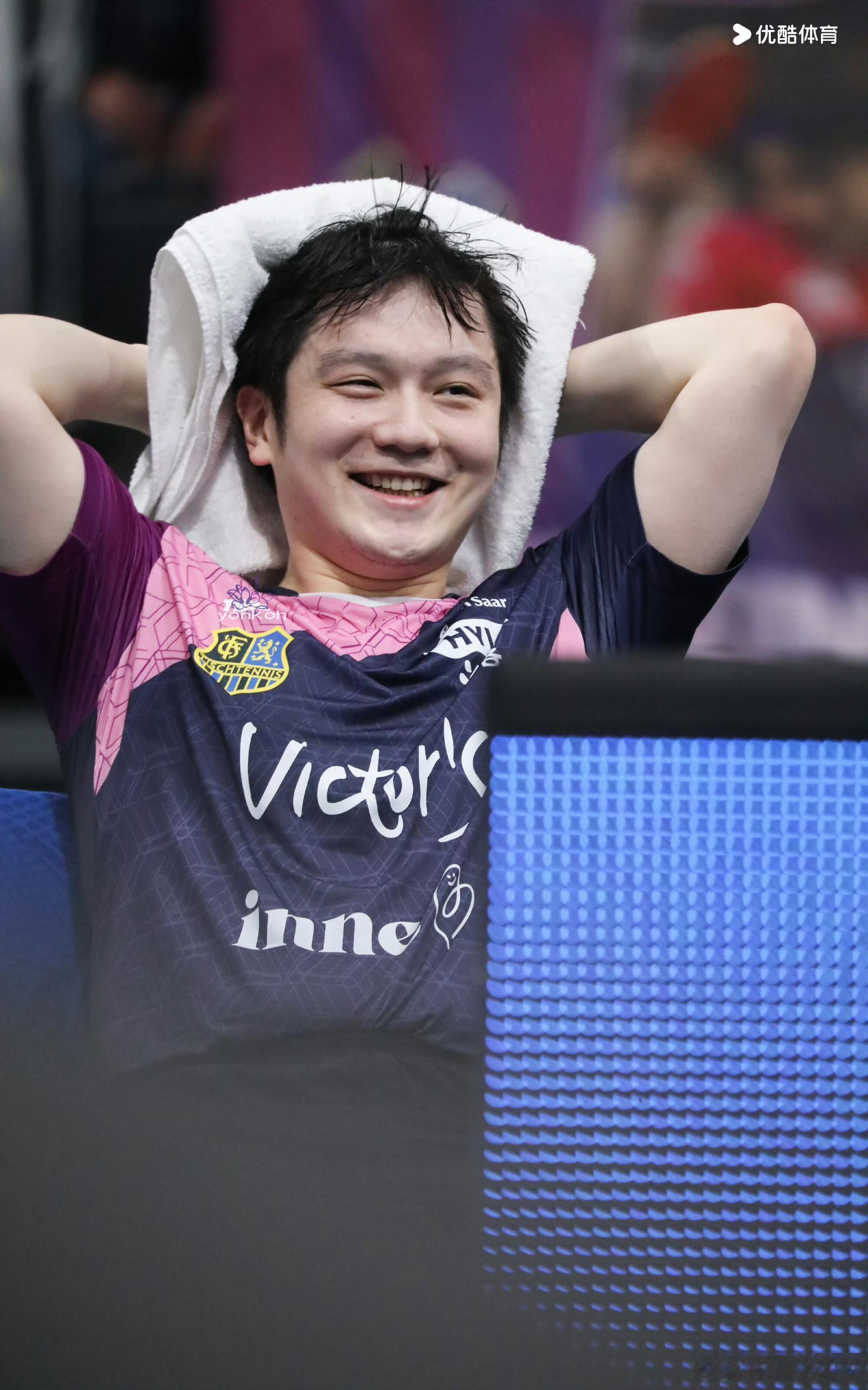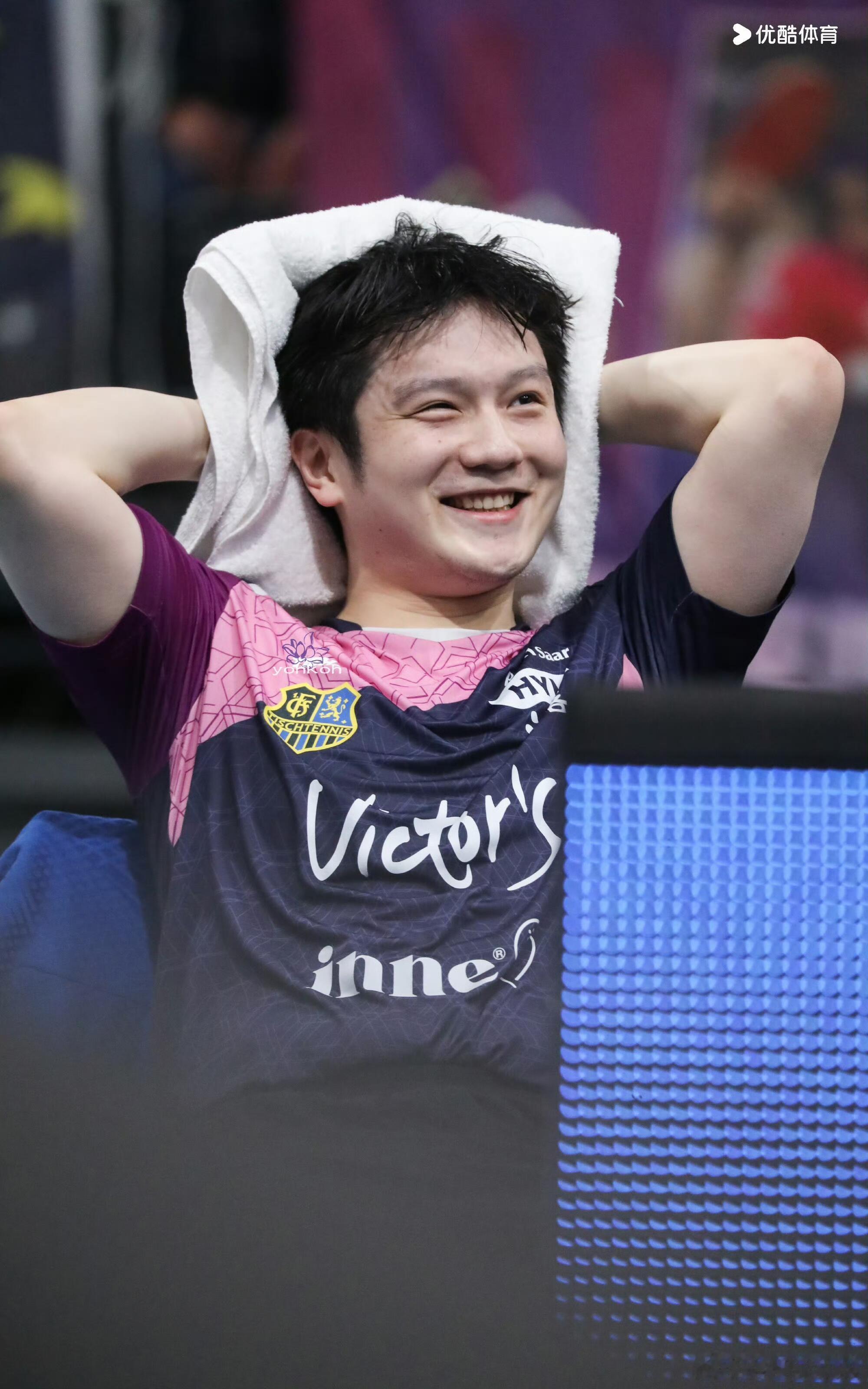 功夫熊猫的粉色战袍!樊振东笑的太开心了,竞技体育,输赢很正常。东哥被小莫逗得很开