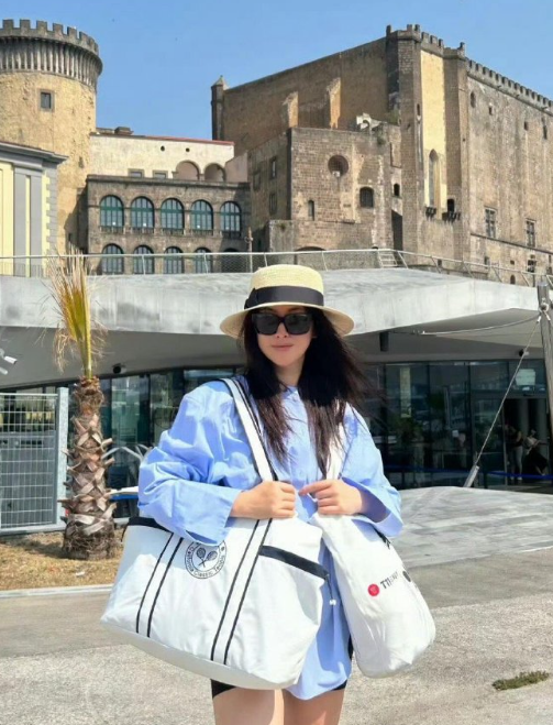张天爱跟素人合影,胯真的好宽,大宅院似的
