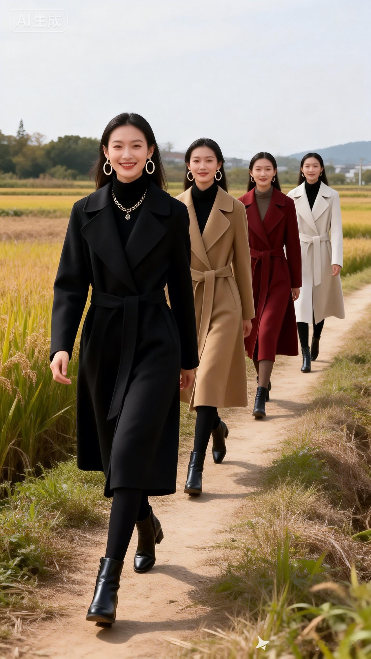 秋日穿搭指南:时尚姐妹花漫步田间小路!