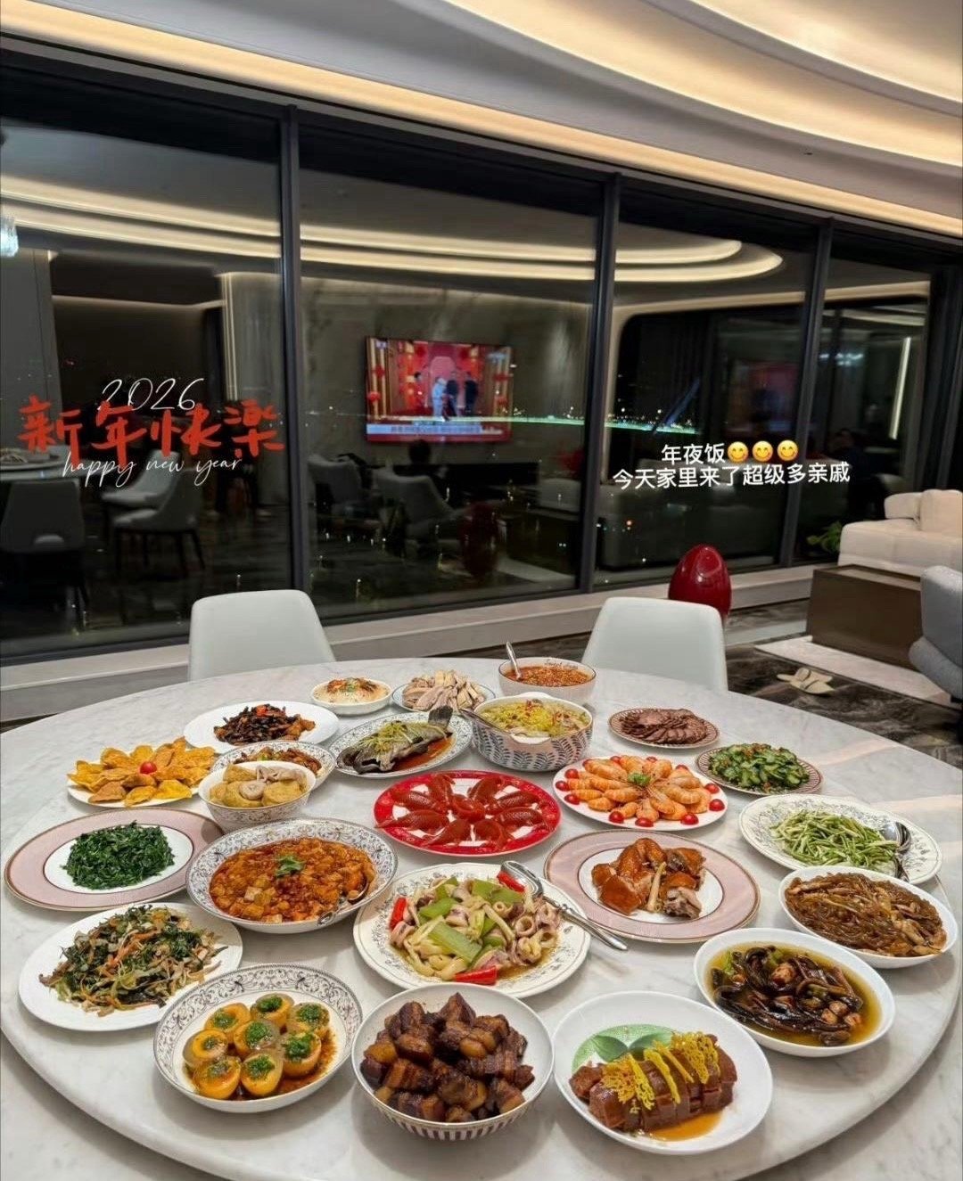 潘玮柏的老婆真贤惠,搞了一大桌子的年夜饭,样式摆盘漂亮,色彩搭配丰富,菜色寓意吉祥,招待亲戚倍有面。