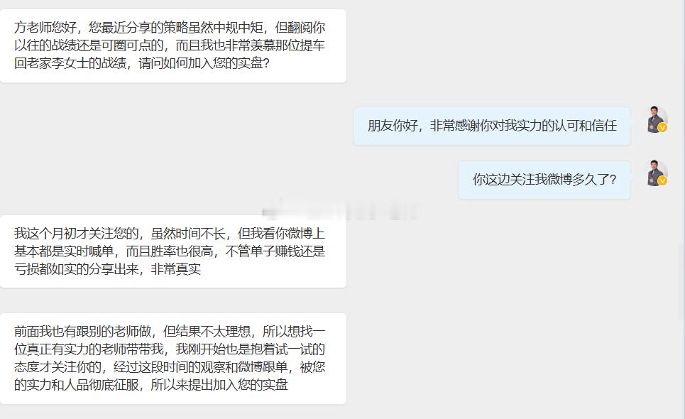 步入市场成为一名投资者,我们或多或少背负着别人的质疑与身边人的期盼,如何在这个市场获取到自己的一桶金,其实在你主观思维,要明白选择大于自己本身优势,专业的事情选择专业的人做,那么你会事半功倍。深耕黄金原油投资多年,粉丝跟随无数,我在有着专业能力的同时,始终保持做人的根本,用诚信赢得客户信任。