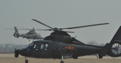 直-9直升机是中国哈尔滨飞机制造公司1980年10月正式引进法国SA-365N“海豚”直升机专利、研制生产的双发轻型多用途直升机。直-9直升机可用于人员运输、近海支援、空中摄影、海上巡逻、海洋观测、护林防火、海上石油开采,也可改装为专机型、反坦克型、海上搜索救护型、反潜型、侦察校炮型、通信型等各种军用直升机。直-9直升机1982年完成了首架装配。1988年起,开始实施中国国产化。1992年1月16日,直-9(直-9A-100)首飞。1992年年底直-9中国国产化整机技术鉴定显示国产化率已达72%,并投入批生产。