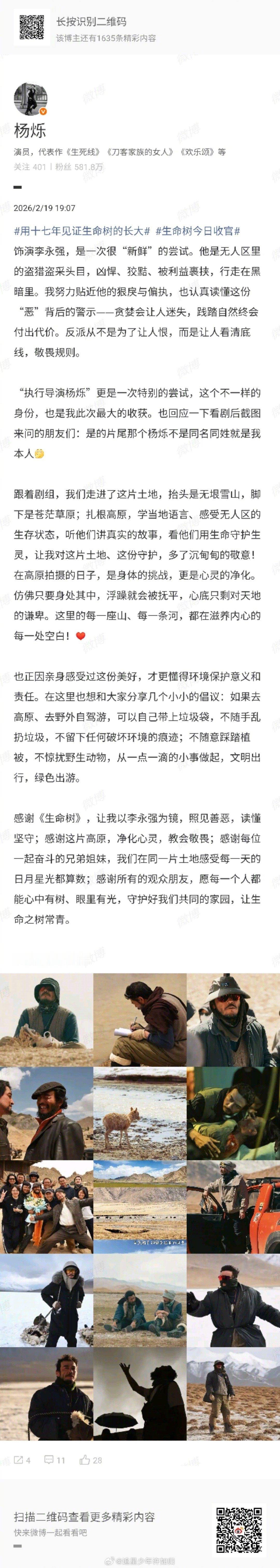 杨烁居然转行做了导演 《生命树》让杨烁解锁了新身份。从演员到执行导演,这一步他跨得稳。片场教杨紫用枪,给胡歌代位,细节控的样子比演戏还认真。收官长文里那些话,能读出他对这部戏的心血。新的一年,期待他更多作品。