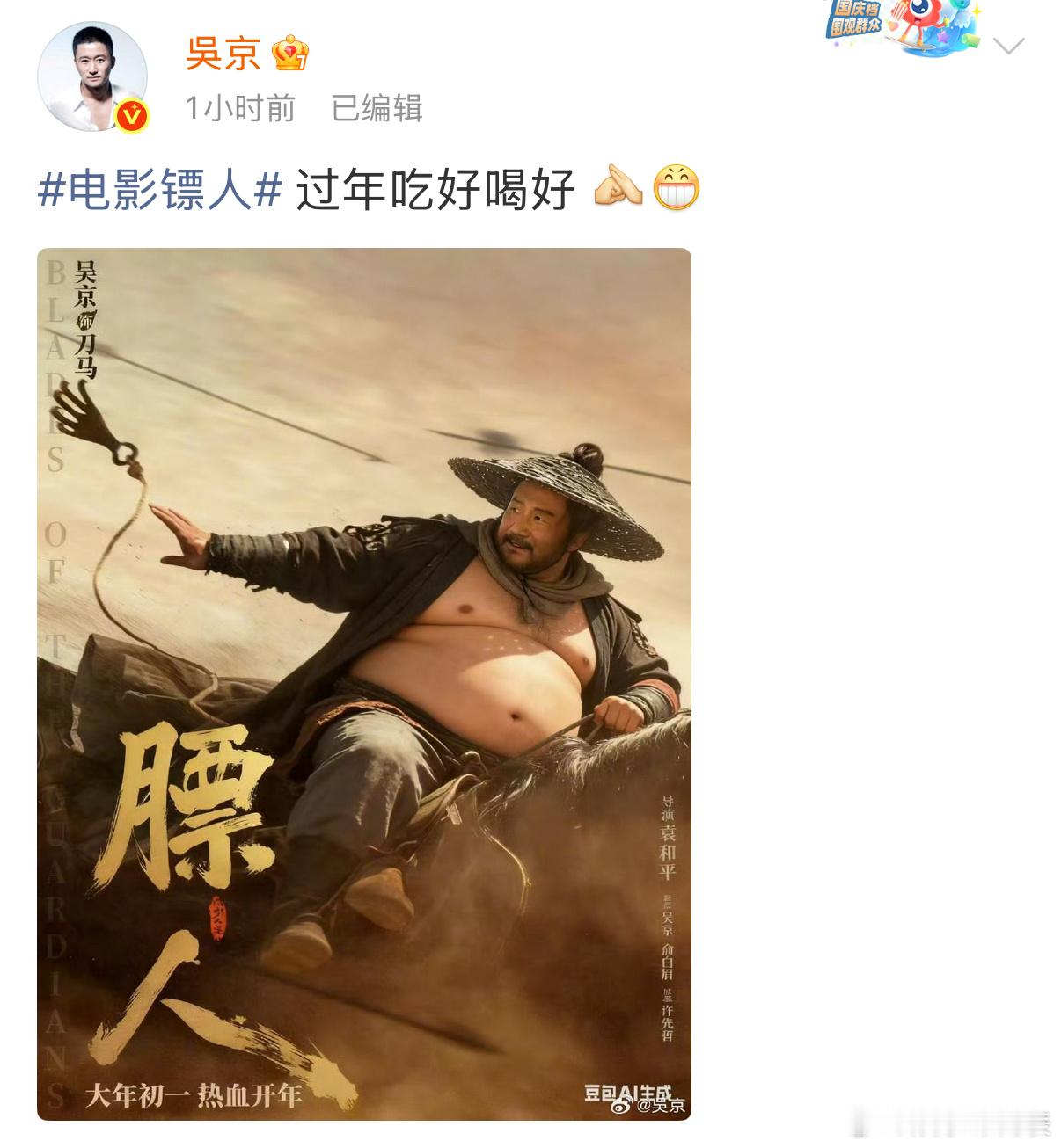 吴京也成膘人了 继谢霆锋后,吴京也变成了膘人,哈哈哈哈你们《镖人》剧组下一个是谁?谢霆锋过完年已成为膘人