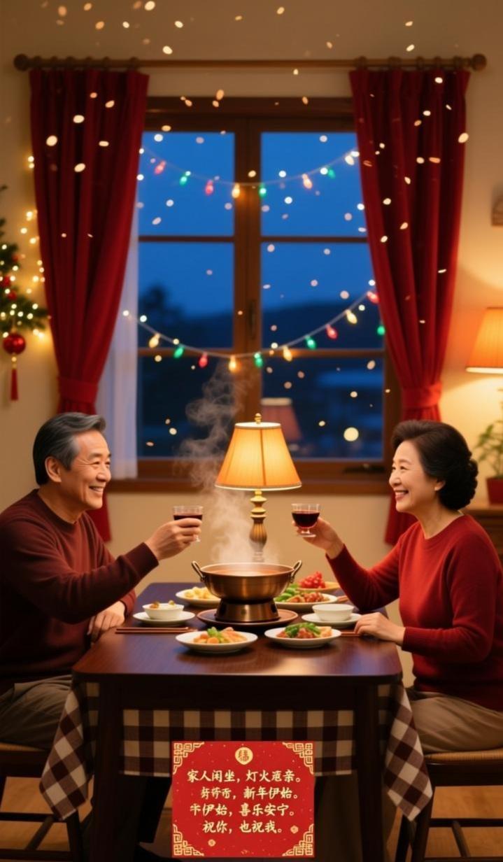 家人闲坐,灯火可亲。 新年伊始,喜乐安宁。 祝你,也祝我。
