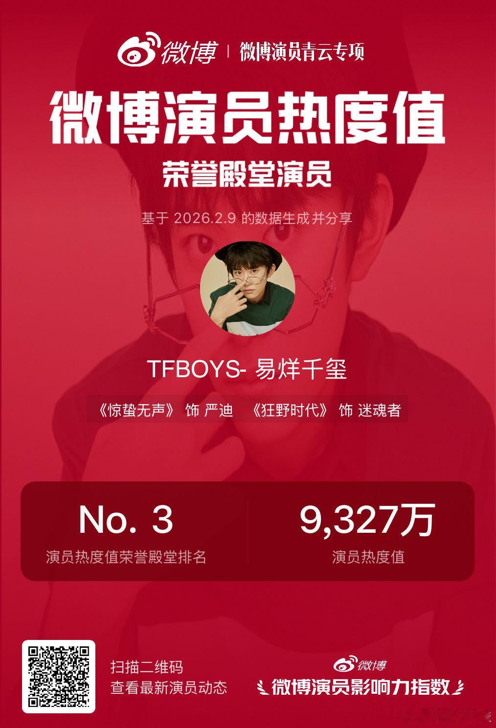 易烊千玺微博演员影响力热度值破9327万 在《惊蛰无声》中饰演的严迪,是藏于暗处的国安勇士,他用微表情的细腻把控、动作戏的亲自上阵,让这个角色有血有肉。胸有丘壑,面如静水,他把严迪的隐忍、果敢与坚守演到了观众心里,这份热度,是角色的魅力,更是演技的实力!戳微博演员影响力指数为微博演员青云专项微博演员影响力实力演员易烊千玺助力!