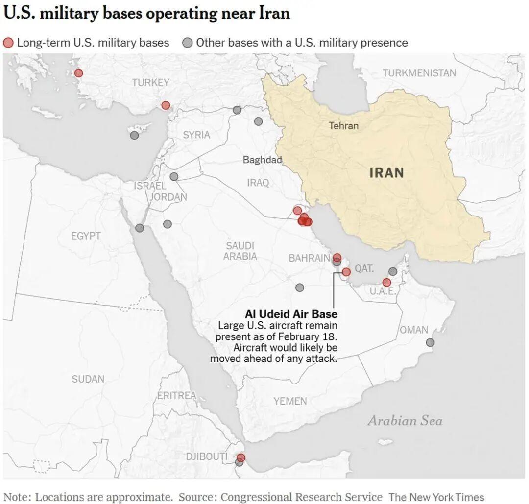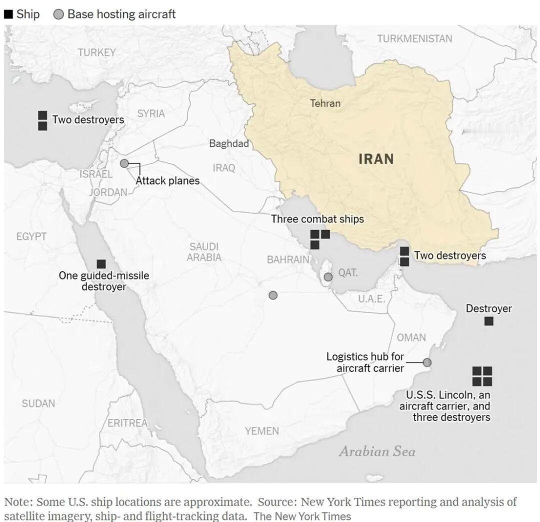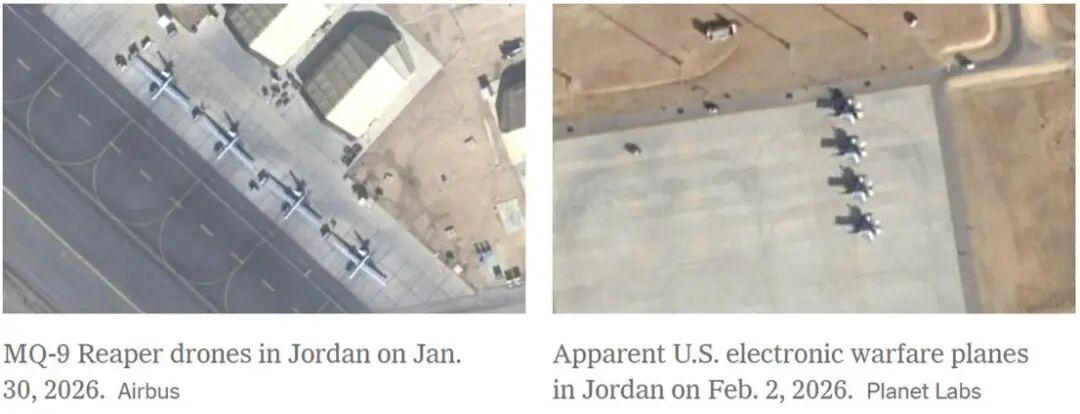 周四上午,特朗普的“和平委员会”在华盛顿举行首次会议,他宣布成员国已承诺提供70亿美元投资,用于加沙重建。他还表示,美国将为此投入约100亿美元,而与无休止战争的代价相比,这只是一个“很小的数字”。不过,他并未说明国会是否已批准新的拨款,也未透露资金来源。他还宣布任命他的女婿库什纳为特别和平特使,专门负责协调促成新的外交协议。他称赞库什纳先前在中东谈判中发挥的作用,包括促进《亚伯拉罕协议》。关于伊朗问题,特朗普表示,他希望能与伊朗达成协议,遏制其核武器计划——这项他曾表示在几个月前已在美军打击下遭到严重削弱的计划。不过,在将大量军事资源调往波斯湾、为可能的进攻做准备之后,他并未排除战争的可能性。他说,美国“可能不得不再进一步,也可能不用”,在接下来的十天左右就会见分晓。 近几周来,美军在伊朗附近地区大规模集结兵力。但与去年6月美以联合打击伊朗核设施不同,此次特朗普的目标尚不明确。被派往中东的兵力包括两艘航母,其中一艘是林肯号,其编队中有三艘配备“战斧”巡航导弹的军舰,曾参与去年6月对伊朗两处核设施的打击行动。舰载的F-35战机和F/A-18攻击机已处于对伊朗境内数十个目标的打击范围之内,特朗普一声令下即可开展行动。 不久前,最先进的福特号航母和三艘驱逐舰也被派往该地区,截至周三,该编队正驶向直布罗陀海峡。福特号上的战机曾参与1月3日对委内瑞拉的行动。 此外,另一艘驱逐舰已被派往阿拉伯海北部,还有一艘正在途中。据美海军官员称,美军在该地区的驱逐舰总数已达13艘。位于约旦东部的穆瓦法克·萨尔提空军基地似乎已成为此次增兵行动中美军空中力量的核心枢纽。1月中旬至2月中旬,至少已有两批攻击机抵达该基地,使驻扎在那里的飞机数量接近30架。 除攻击机外,4架电子战飞机于1月底抵达约旦。1月30日的卫星图像还显示,该基地至少部署了5架MQ-9“死神”无人机。 航班追踪数据和卫星图像表明,美国还在向该地区调动更多飞机,包括加油机和侦察机。近期,数十架加油机和运输机已从美国重新部署至欧洲多处基地,以支援中东地区的部队。 五角大楼还向该地区增派了“爱国者”和“萨德”防空系统,以防伊朗短程和中程导弹对该地区美军驻军实施报复性打击。目前,该地区约有3万至4万名美军人员。 驻扎在美国本土、可打击伊朗目标的远程轰炸机目前处于高于平常的戒备状态。今年1月,在特朗普要求制定应对伊朗镇压国内抗议的方案后,五角大楼提高了警戒级别。此后,多架特种作战机、侦察机和加油机被派往印度洋的迪戈加西亚军事基地。该基地是远程B-2隐形轰炸机的前沿部署机场。 图片来源于网络