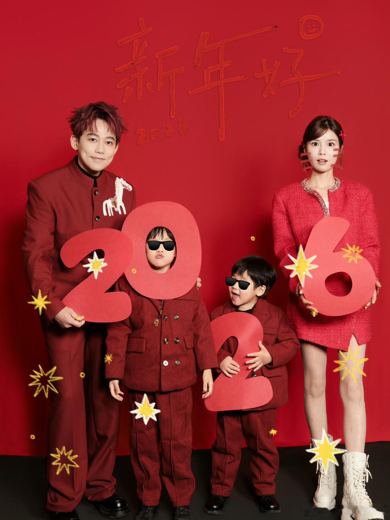2026春节明星全家福,每个都很温馨。 刘畊宏、陈小春应采儿、苏醒、沙溢胡可、吴尊、田亮叶一茜、胡杏儿、陶喆、李荣浩杨丞琳。 田亮一家四口真的是共用一张脸啊。 苏醒我还以为他没结婚呢,结果孩子都两个了。 刘畊宏、陈小春、苏醒用心了,为了新年拍全家福专门用心做了准备。 明星全家福