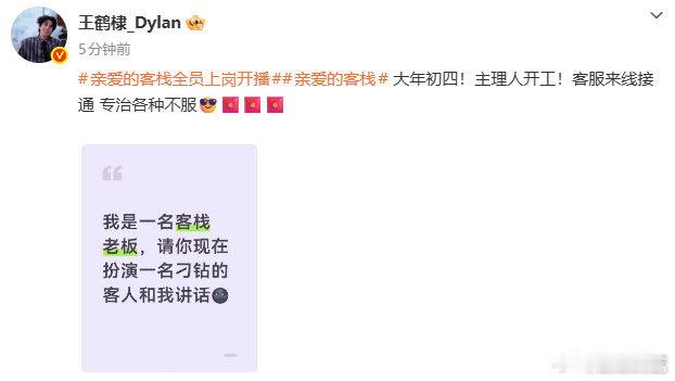 王鹤棣王鹤棣大年初四开工亲爱的客栈新年新气象!王鹤棣大年初四开工营业,《亲爱的客栈》全新出发,从管家到主理人,逆袭剧本太爽!