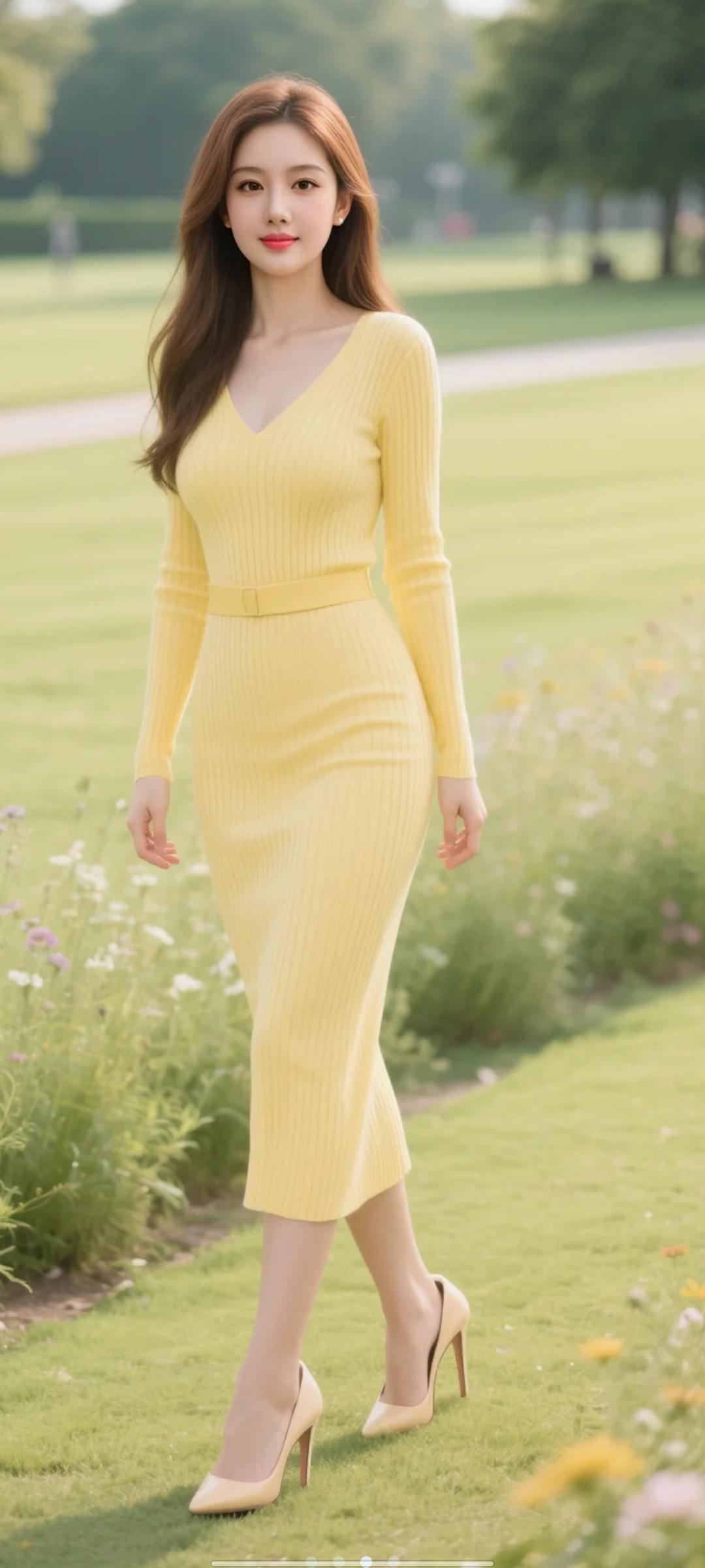 宝子们,你们喜欢这种优雅气质,黄色连衣裙,公园里的美丽瞬间吗?