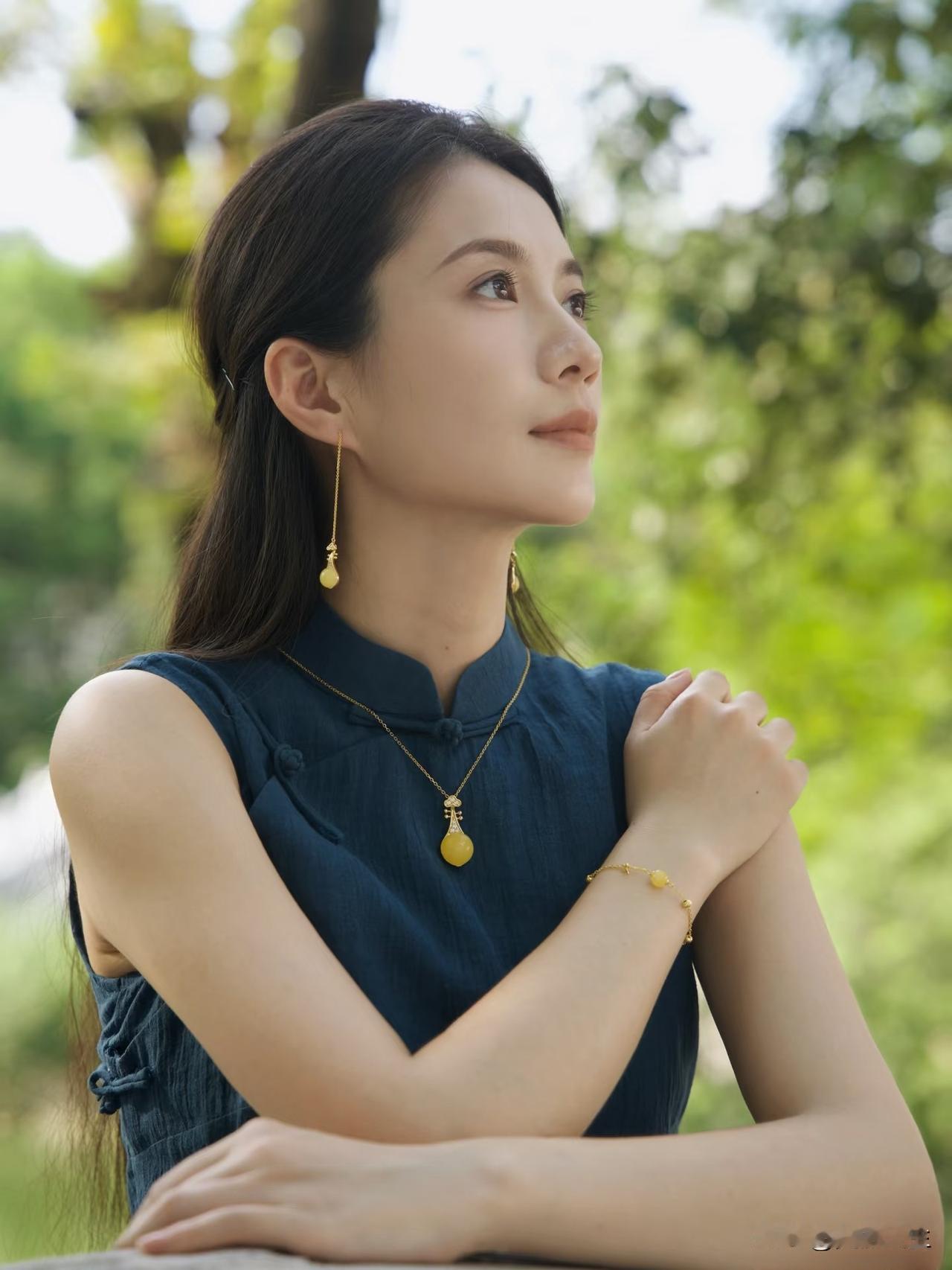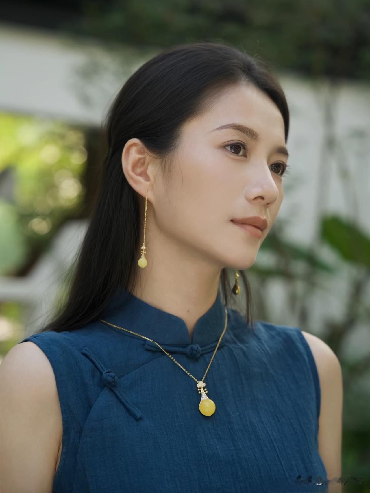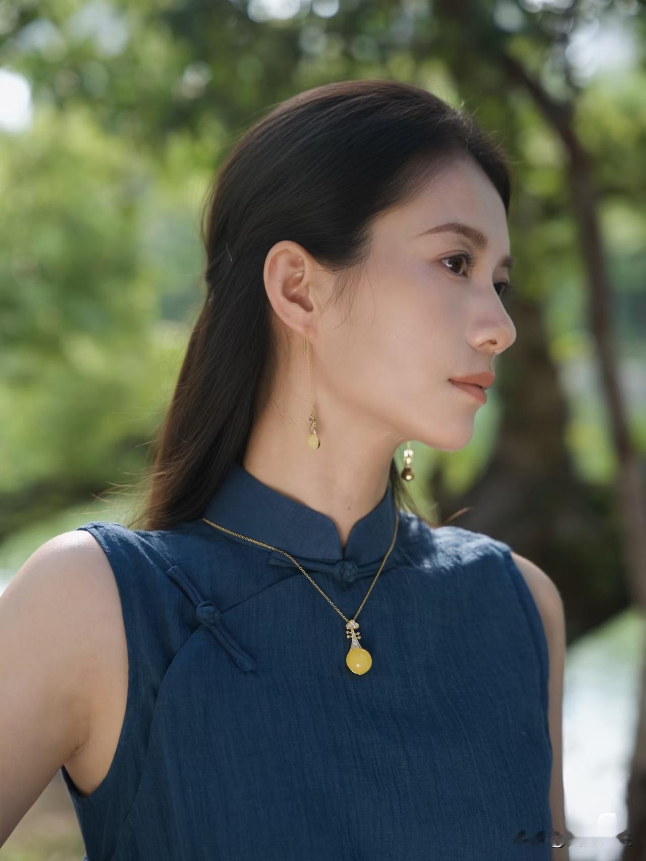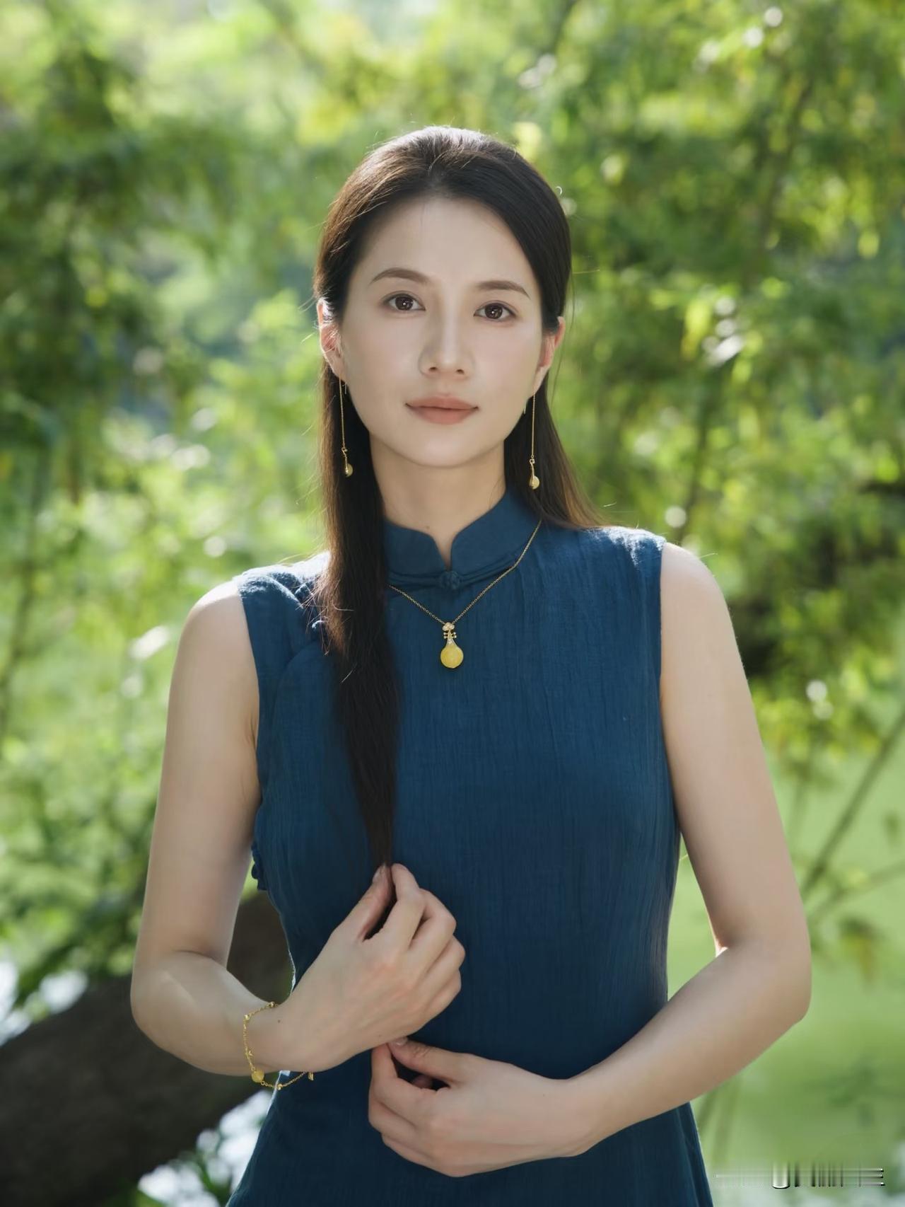 优雅蓝裙,自然妆容,清新自然,美丽人生。