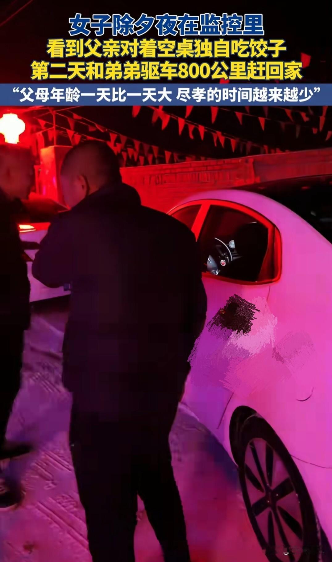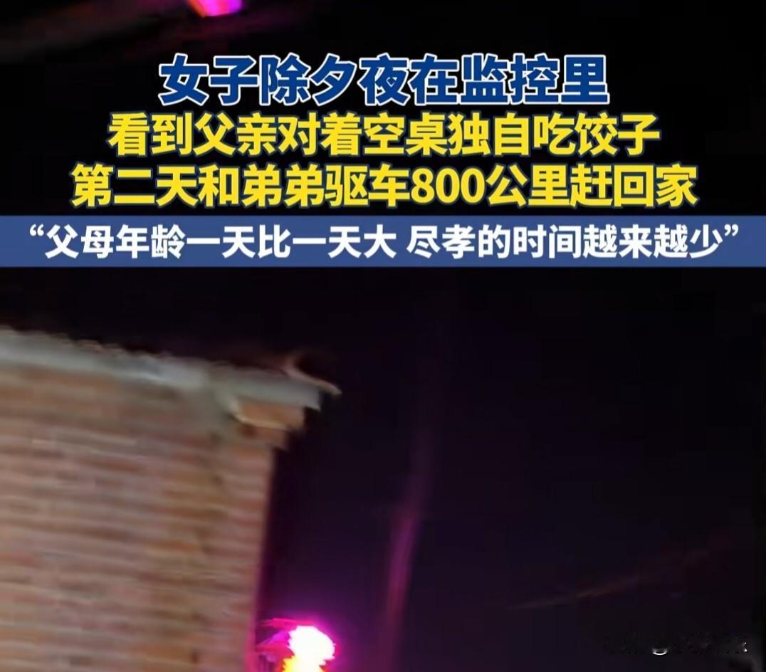 除夕夜,万家灯火团圆时。 远在内蒙古的崔女士,像往常一样打开了手机上的监控APP,想看看老家哈尔滨的父亲在做什么。 画面加载出来的一瞬间,她的心像被什么东西狠狠揪住了——空荡荡的屋子里,老父亲独自坐在桌前,对着一盘饺子,慢慢地吃着。 窗外隐约的鞭炮声,更衬得屋里一片冷清。这个本该儿孙绕膝的老人,怎么就一个人?女儿的眼眶,瞬间就湿了。 监控画面里,父亲的动作很慢,吃几口,就停下来发会儿呆。 桌上只有一盘饺子,和简单的碗筷,旁边没有一个人,没有一句交谈。那落寞的背影,像一根刺,深深扎进了崔女士的心里。 她和弟弟在内蒙古生活、工作,原本的计划是等到年初五,不那么忙了再一起回哈尔滨老家。 可看着屏幕里那个孤独的身影,她一刻也等不了了。 “爸妈年龄一天比一天大,我们能陪他们的时间,真的还有那么多吗?”这个念头一冒出来,就再也压不下去。 她立刻给弟弟打了电话,姐弟俩一合计,当即决定:现在就出发! 800公里,一路的风雪和夜色,都挡不住那颗急切回家的心。他们轮流开车,心里只有一个念头:快点,再快一点。 当车子终于拐进熟悉的小巷,远远地,他们就看见了——家门口,父亲佝偻着身子,正站在寒风中,不停地张望。 看到女儿和儿子的那一刻,老人愣了一下,下意识地迎上前,嘴里却习惯性地念叨着:“大老远的,不是说过几天才回来吗?这么冷,回来干嘛……” 话音未落,眼泪却已止不住地往下流。 崔女士冲上去一把抱住父亲,所有的愧疚和心疼,都化在了这无声的拥抱里。 父亲一边用粗糙的手抹着眼泪,一边又忍不住笑了,嘴里还在嘟囔:“快进屋,外面冷,饺子还给你们热着呢……” 我们总以为来日方长,总想着等有空了、等不忙了、等赚够钱了,再回去好好陪父母。可时间从不等人,父母的老去,往往就在一瞬间。 崔女士是幸运的,因为她看到了监控里的那一幕,更因为她选择立刻行动,让800公里的归途,跑赢了遗憾。 而天下有多少父母,在无数个我们看不见的夜晚和节日里,就是这样默默地吃着饭,静静地等着那个可能不会响起的电话,和那个可能不会推开的门。 父母在,人生尚有来处;父母去,人生只剩归途。 别让“等下次”,变成“来不及”。爱,经不起等待;团圆,也无需挑日子。 那个守在门口的身影,就是这世上最不容辜负的深情。回家