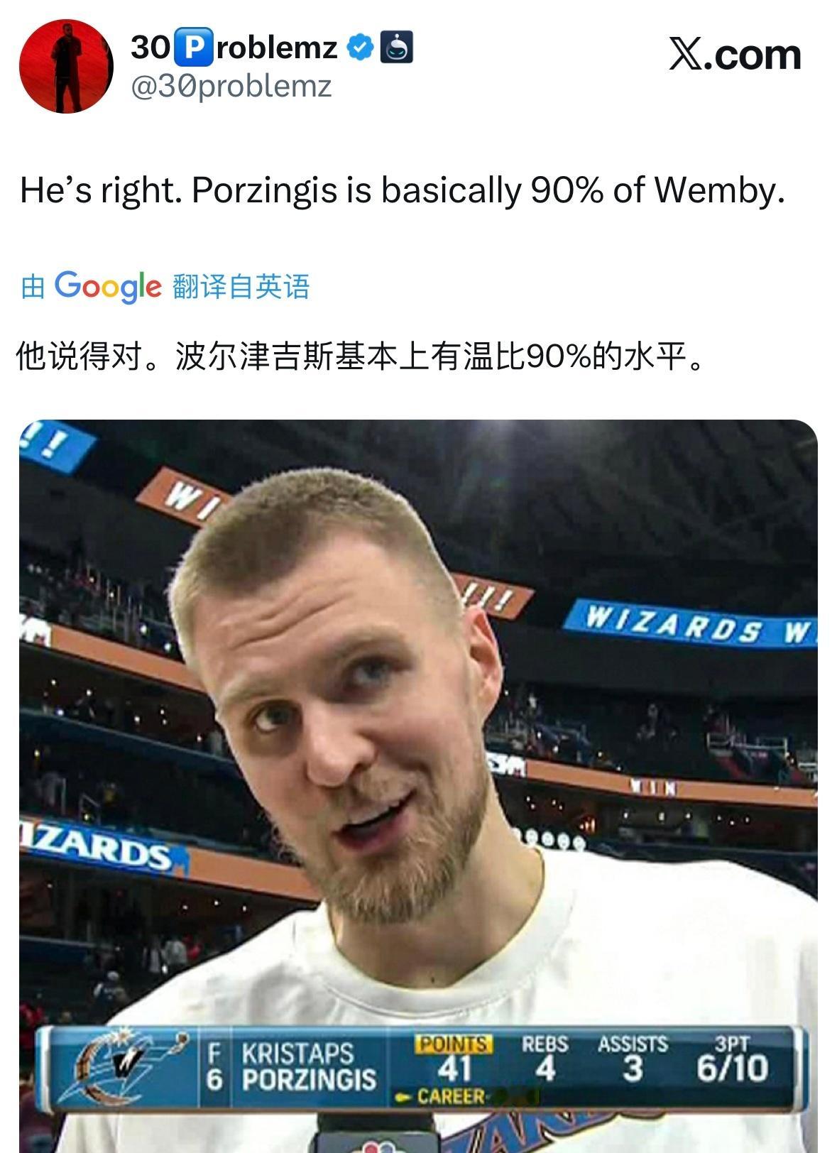 国外勇士博主之前认为波津有文班90%的水平,今日首秀拿下12分1板1助攻。