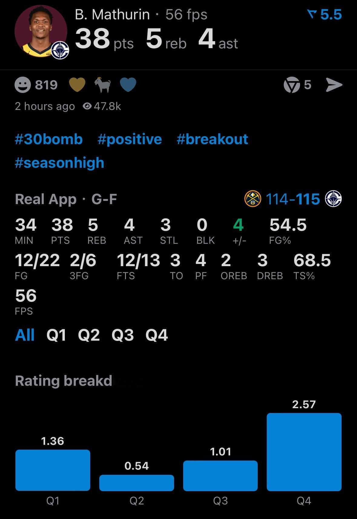 马瑟林快船主场首秀爆砍38分5板4助攻! 22投12中,三分6中2,罚球13中12。