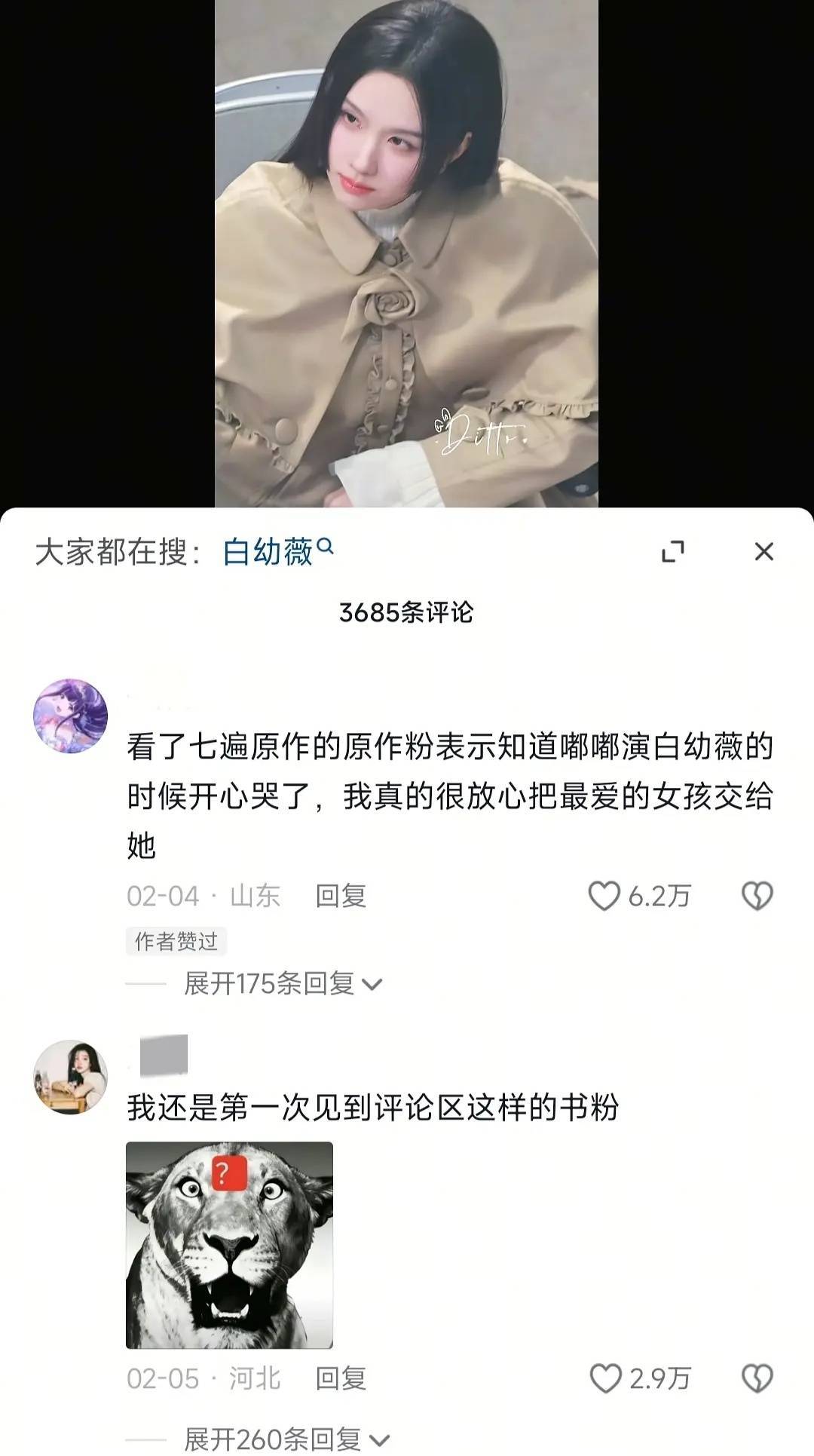 陈都灵官宣玩偶的时候,书粉对她演白幼薇的认可点赞都能点到6.2万,连原作者都特别满意的含金量。