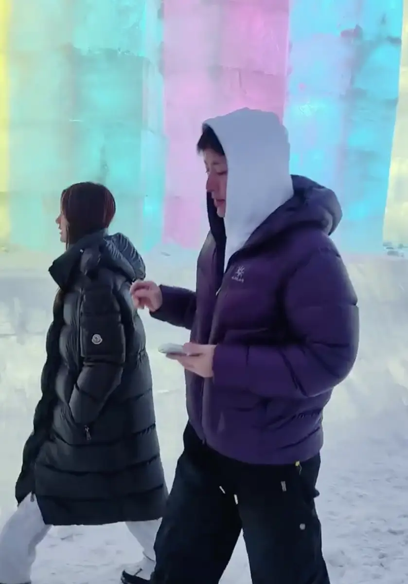 贾乃亮和女儿甜馨回东北过年!父女俩去冰雪大世界玩滑梯心情好