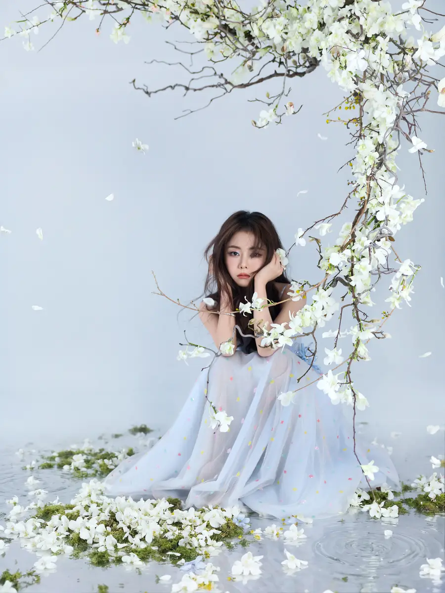 谭松韵穿浅蓝纱裙气质优雅如兰 慵懒微笑灵动娇憨
