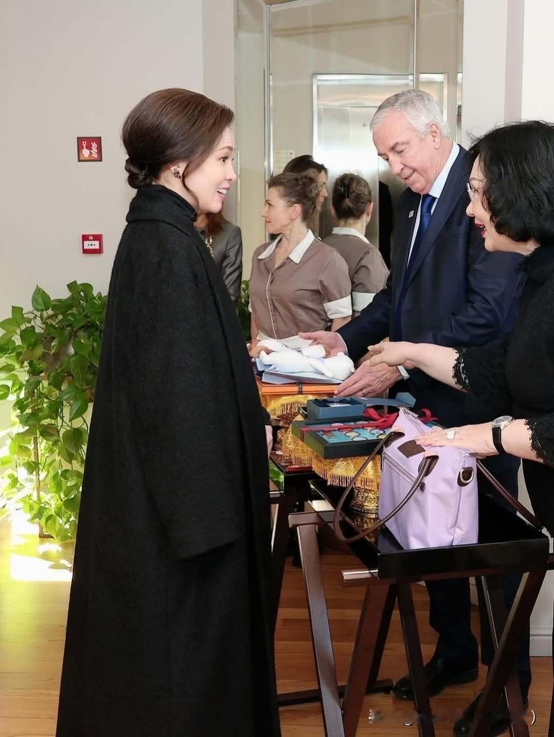 苏提达王后落地米兰时尚之都,造型气质国际范儿!除了在米兰马尔彭萨机场的黑色时尚造型外,出席午宴时的伞裙搭配更是出众!珠宝配饰搭配设计非常注重细节,再一次赢得了广泛好评!